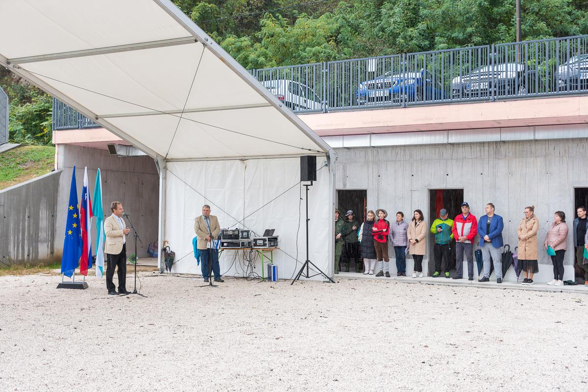 »Imeti v vasi tak objekt je izjemna pridobitev. Povzemam besed gospoda župana, da so nekoč ljudje z ribolovom živeli, želim pa dodati, da ima tak interpretacijski objekt tudi veliko izobraževalno vlogo. Upam si trditi, domačini pa to itak že veste, ta objekt nekakšen spomenik vsem, ki so to reko skupaj z življem uspeli ohraniti tako kot je. Če ljudje ne bi bili z reko tako povezani in od nje tudi odvisni, bi morda reko nekje nižje celo zajezili in bi dolina izgledala popolnoma drugače. Kar pa še ne pomeni, da je vse idealno. Upravljavci rek imamo kar velike izzive, saj veste, da nam nekatere populacije, predvsem lipan, nekoliko izginjajo in tu pa je vloga Zavoda za ribištvo, da prevzame iniciativo in v prihodnjih letih z nekim resnim, velikim, večletnim projektom, uspeli trend upadanja posameznih populaciji omejiti oziroma ustaviti. Z Ribiško družino Tolmin smo se v tej smeri neformalno že pogovarjali, evropski skladi pa tudi ponujajo tovrstno financiranje in naša naloga je, da to izkoristimo,« je povedal direktor Zavoda za ribištvo Republike Slovenije Matevž Podjed