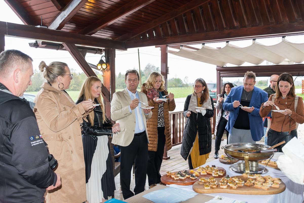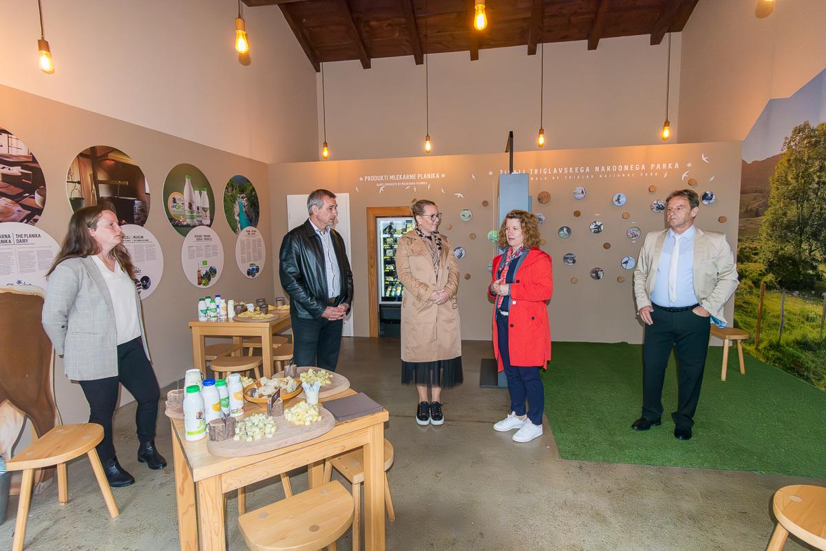 Za vse prisotne je sledila pokušina ribjih jedi, ogled Ribiške hiše pod vodstvom Ane Trnkoczy in druženje ob prijetnem klepetu. S Kala Koritnice so ministrico Čalušić popeljali še na ogled Posestva Bogata, ki je največja farma govedi v Posočju. Tam jo je sprejel direktor Mlekarne Kobarid d. o. o. Miran Božič s sodelavci, ji predstavil pomen Mlekarne Planika in samega Posestva Bogata, kljub dežju pa so si skupaj ogledali celotno posestvo. Ministrica se je seznanila z njihovimi dobrimi praksami na področju kmetijstva ter z delovanjem posestva. Povedali so ji, kako se prilagajajo novim razmeram v kmetijstvu in ohranjajo bogato tradicijo pridelave mleka, ki ga predelujejo v zelo kakovostne mlečne izdelke. Obisk so zaključili z degustacijo izbranih izdelkov Mlekarne Planika, kjer so ministrici predstavili tudi pomen Mlekarne za lokalno gospodarstvo in vlogo Posestva Bogata v širšem kontekstu razvoja regije. Obisk ministrice so izkoristili tudi za izmenjavo mnenj in predstavitev izzivov, s katerimi se soočajo v kmetijskem sektorju, pa tudi za poudarjanje pomena podpore lokalnemu gospodarstvu in povezovanju kmetijstva s turizmom. S Posestva Bogata se je delegacija odpravila še na odprtje v muzej prenovljene sirarne Ravni Laz.