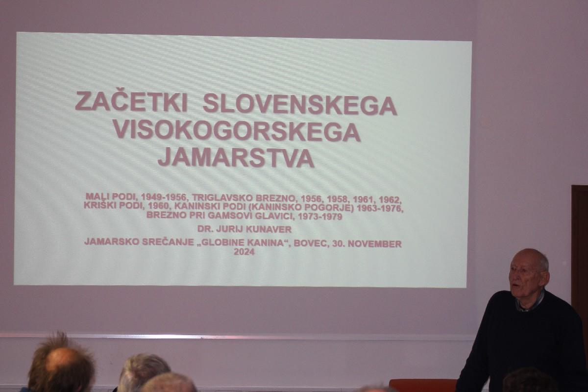 Za uvod v popoldanske predstavitve je poskrbel dr. Jurij Kunaver, ki se je najprej nostalgično spomnil njegovega prvega prihoda na Bovško. Kunaver se je na Kanin prvič odpravil leta 1961, nato pa dve leti kasneje začel prve odprave v podzemlje. Danes to območje raziskujejo številna jamarska društva. Registrirali so že več kot 800 jam, najdlje v globino pa med odkritimi sistemi seže jama Čehi II s 1505 metri razlike med nadmorsko višino vhoda in najnižjo točko.