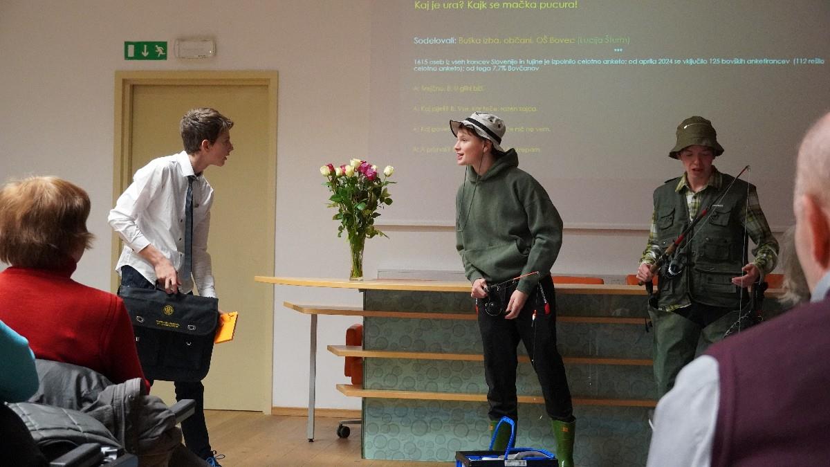 Učenci Osnovne šole Bovec so se med poukom pod vodstvom Lucije Šturm seznanili, kaj so to folklorni obrazci: uganke, pregovori, šaljivi pregovori – o slednjih, ki so bili predmet ankete (primer: Kaj je ura? Kajk se mačka pucura!), so se še posebej podrobno pogovorili: katere sami poznajo in uporabljajo, kakšni so konteksti rabe, ali so primerni v vsaki govorni situaciji ali ne. Mlajši šolarji so anketo izpolnjevali skupinsko, starejši, od 6. razreda do 9. razreda, so anketo izpolnili sami, posredovali pa so jo tudi staršem in sorodnikom. Na osnovi gradiva, ki so ga spoznali v spletni anketi nekonvencionalnih replik in samostojno zbranih enot so osnovnošolci pripravili nekaj skečev, ki so jih ob koncu šolskega leta junija 2024 uprizorili v šoli pri pouku. Daljši skeč so predstavili na zaključni prireditvi projekta (6. 12. 2024).