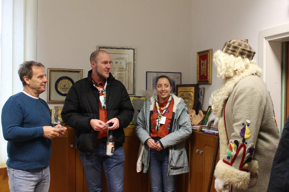 Letos že 34. leto po vsej Sloveniji delijo Luč miru iz Betlehema, za katero pravijo, da ni le svečka, plamenček ali lučka, temveč Luč – veliko več kot samo fizični plamen. Je simbol miru in upanja, ki ga vsak od nas lahko nosi v sebi. »Morda se nam včasih zdi, da je plamen majhen in nepomemben, a prav plamen, ki ga ponesemo med ljudi, je priložnost za srečanje, za pogovor, za trenutek tišine in premislek, pa tudi za trenutek iskrenosti in topline. Zato vam prinašamo Luč, ki se je v Betlehemu spustila med nas, da nas obsije z mirom in poveže v skupnost ljudi. To je naš korak bližje vam v tem mrzlem času. Želimo vam dati to Luč, želimo biti z vami v skupnosti. Sprejmite jo od nas in jo nesite naprej. Naredite tudi vi korak bližje ljudem, nikogar ne pustite samega, poiščite način, da jim pokažete bližino. Pusti se obsijati z mirom in zasveti v temi,« sta poudarila skavta, Angelika Volarič pa je županu prebrala še letošnjo poslanico: