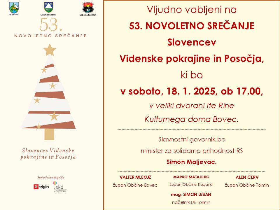 VABILO NA 53. NOVOLETNO SREČANJE SLOVENCEV VIDENSKE POKRAJINE IN POSOČJA