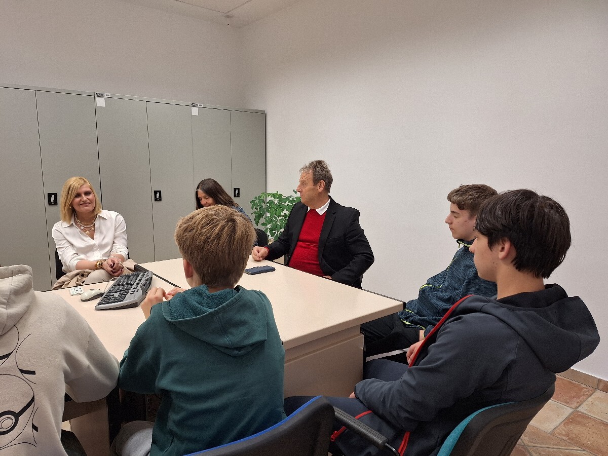 Včeraj, 21. 5. 2025, je v sejni sobi Občine Bovec potekal šolski parlament, že tradicionalni obisk učencev OŠ Bovec pri županu Občine Bovec Valterju Mlekužu. 16 šolskih parlamentarcev sta spremljali ravnateljica OŠ Bovec Denise Šuler Rutar in mentorica Iris Kravanja Šorli. Šolske parlamentarce je zanimalo, kako poteka županov delovni dan predvsem pa, katere so trenutne prioritete in načrti Občine, ki bi mlade spodbudili, da se v prihodnosti ne bi odseljevali. Opozorili so tudi na problematiko, s katero se ukvarja šolski parlament, in predstavili aktivnosti, ki so jih izvedli v tem šolskem letu. Župan Valter Mlekuž je pohvalil njihovo zavzemanje za obravnavo posameznih problematik in podajanje predlogov, poudaril pa je tudi, da so prav oni tisti, ki bodo v prihodnosti prispevali k razvoju občine oziroma krojili tudi razvoj Bovškega.