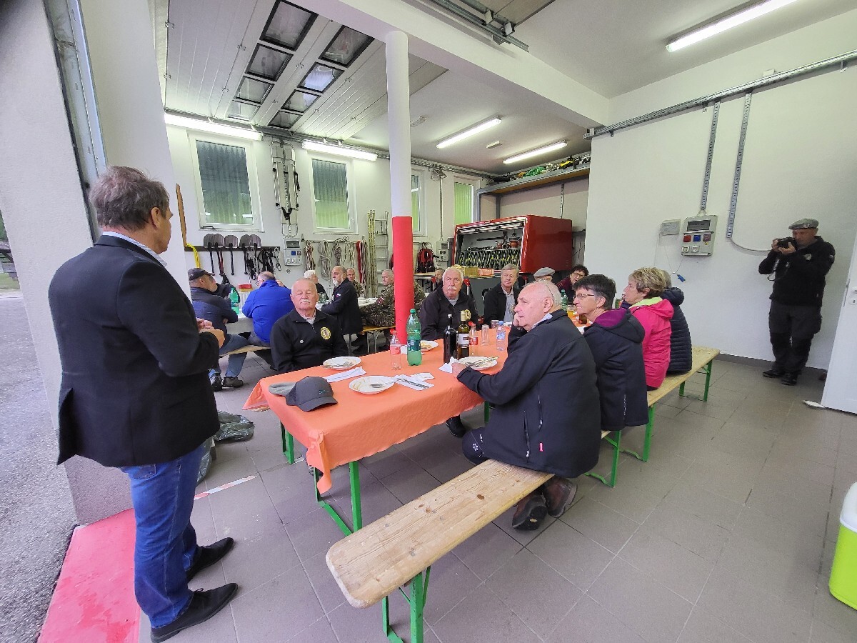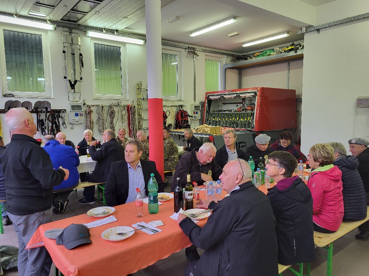 Ob vrnitvi v dolino se je pri Štolnu v Logu pod Mangartom nadaljevalo prijetno prijateljsko druženje, prej omenjenim pa so se pridružili še Župan Občine Bovec Valter Mlekuž s sodelavcem Milanom Štulcem, ki je za Občino Bovec dogodek tudi koordiniral, predstavniki KS Log pod Mangartom s predsednikom Igorjem Černuto na čelu, ki so poskrbeli za prijazno gostiteljstvo ter člana ZVGS iz Bovca.