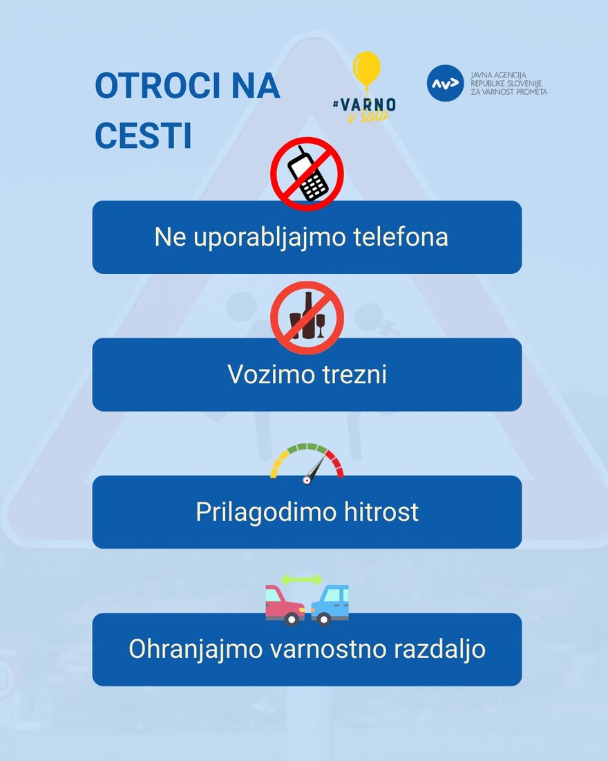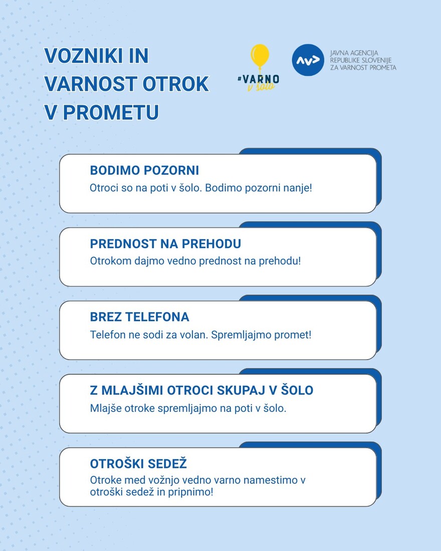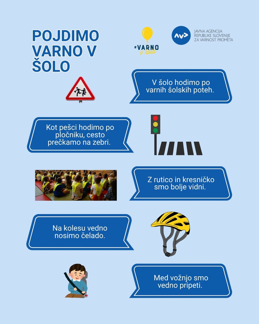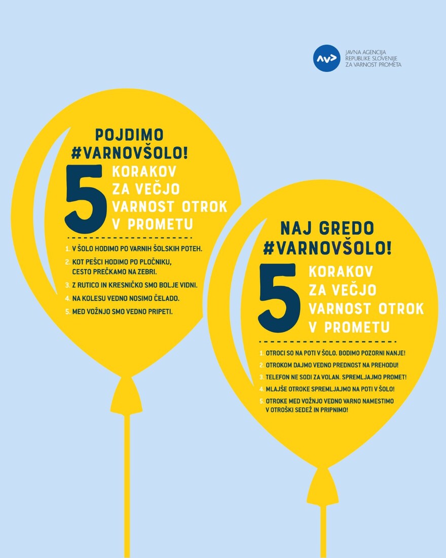 Interes Občin za sodelovanje v nacionalni preventivni akciji varno v šolo je tako velik, da naročila odsevnikov in drugih elementov za povečanje vidnosti in s tem varnosti otrok v prometu presegajo zaloge Javne agencije Republike Slovenije za varnost prometa. Kot so zapisali, so prejeli naročila 147 občin., med njimi tudi Občine Bovec. Količine odsevnih trakov so tako zmanjšali občinam Beltinci, Bovec, Brežice, Domžale, Ig, Ljutomer, Logatec, Ljubljana, Trebnje in Zreče. Letos so za prvošolce na voljo le odsevni trakovi, saj kresničk žal ni. V ponedeljek, 1. septembra, se bo na šolske poti podalo 190.000 osnovnošolcev. V prvih dneh pouka bodo prostovoljci – člani občinskih svetov za preventivo (SPV), ZŠAM, gasilci, upokojenci in starši – varovali šolske poti na nevarnejših odsekih ter opozarjali voznike na previdnejšo vožnjo. Nekateri bodo spremljali otroke tudi na avtobusih, jih učili o pravilnem ravnanju in opozarjali na uporabo varnostnega pasu. Poseben poudarek je letos namenjen tudi ozaveščanju o varni in prijetni vožnji z avtobusom. V sodelovanju z DUJPP je AVP pred začetkom šolskega leta pripravila nekaj napotkov za varno in prijetno vožnjo z avtobusom, ki otroke spodbujajo k upoštevanju osnovnih pravil, kot so sedenje, uporaba pasu in pravilno vedenje (kliknite).