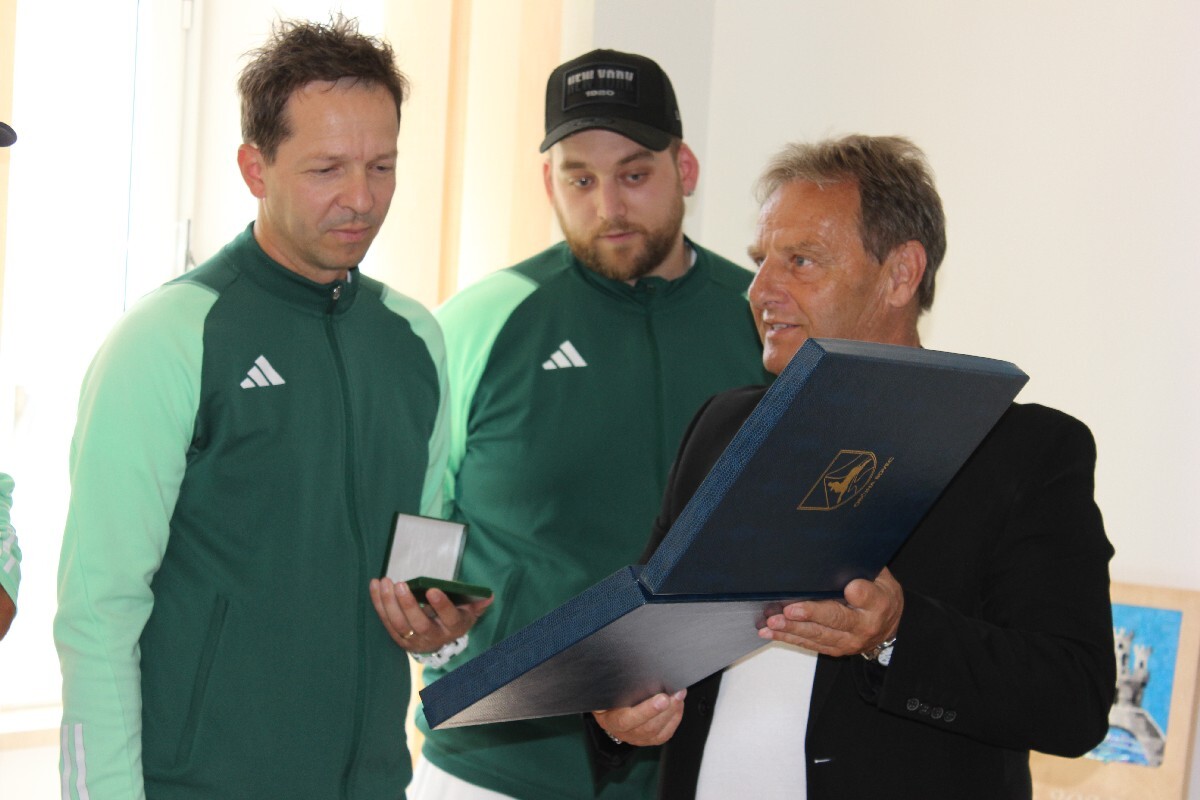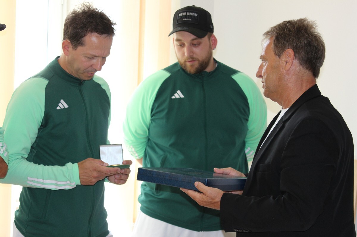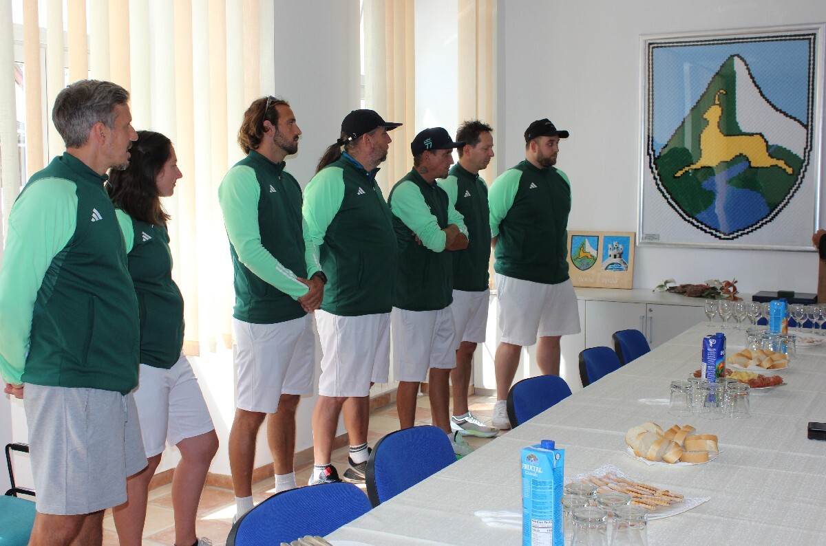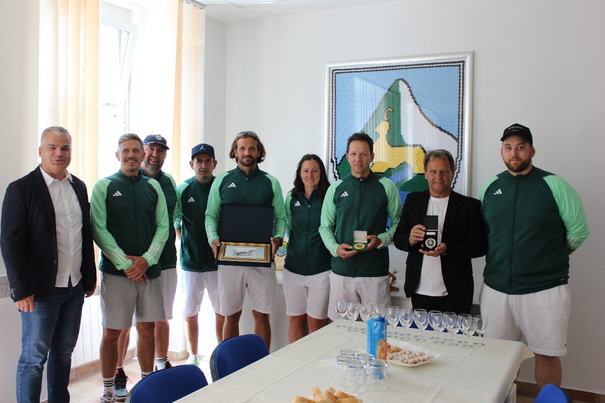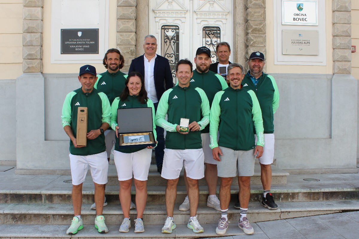Danes, 29. 8., je župan Občine Bovec Valter Mlekuž v družbi direktorja občinske uprave Sejada Jušića v sejni sobi Občine Bovec sprejel ekipo Footgolf kluba Posočje Bovec. FootGolf klub Posočje Bovec je na svetovnem klubskem prvenstvu v Angliji 20. 8. 2025 dosegla zgodovinski in doslej največji uspeh slovenskega FootGolfa, saj je na Svetovnem klubskem prvenstvu FIFG v Angliji po dramatičnem finalnem obračunu osvojila odlično 2. mesto. Ekipo sestavljajo Gaj Rosič - kapetan ekipe, Mitja Kravanja, Simon Sladič, Primož Zorč, Endi Curk, Robert Kravanja, Vasja Kovač, Aleks Kravanja in Dalija Kovač, žal pa se današnjega sprejema niso mogli udeležiti čisto vsi. Kljub temu je bila večina prisotna, župan Občine Bovec Valter Mlekuž pa je ponovno poudaril izjemen pomen njihovega dosežka. Kot je dejal, so športniki res največji ambasadorji Občine Bovec oziroma Bovškega. Dosežek Footgolf kluba Posočje Bovec pa je označil za zares izjemnega in se vsem članom ekipe iskreno zahvalil za njihovo borbenost, jim čestital za njihov izjemni uspeh in jim hkrati zaželel še veliko visokih uvrstitev na njihovi športni poti. V znak hvaležnosti jim je predal Znak Občine Bovec, ki ga župan podeljuje samo za najvidnejše dosežke, in še sliko bovškega trga. Ekipa mu ni ostala dolžna in mu predala srebrno medaljo s svetovnega prvenstva, ki bo od danes naprej krasila županovo pisarno.
