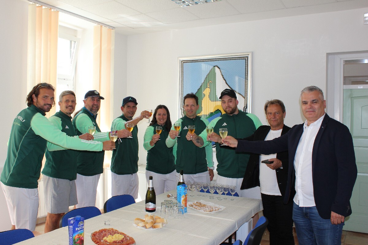 Kot se za take priložnosti spodobi, so nato nazdravili s kozarčkom penečega, ter se še nekaj časa zadržali v prijetnem klepetu, obujanju dogajanja na svetovnem prvenstvu in v tkanju načrtov za prihodnost. Med drugim je bila s strani Simona Sladiča predstavljena tudi zamisel, da bi za pridobitev podmladka poskušali v osnovnošolski program vpleti tudi krožek footgolfa.