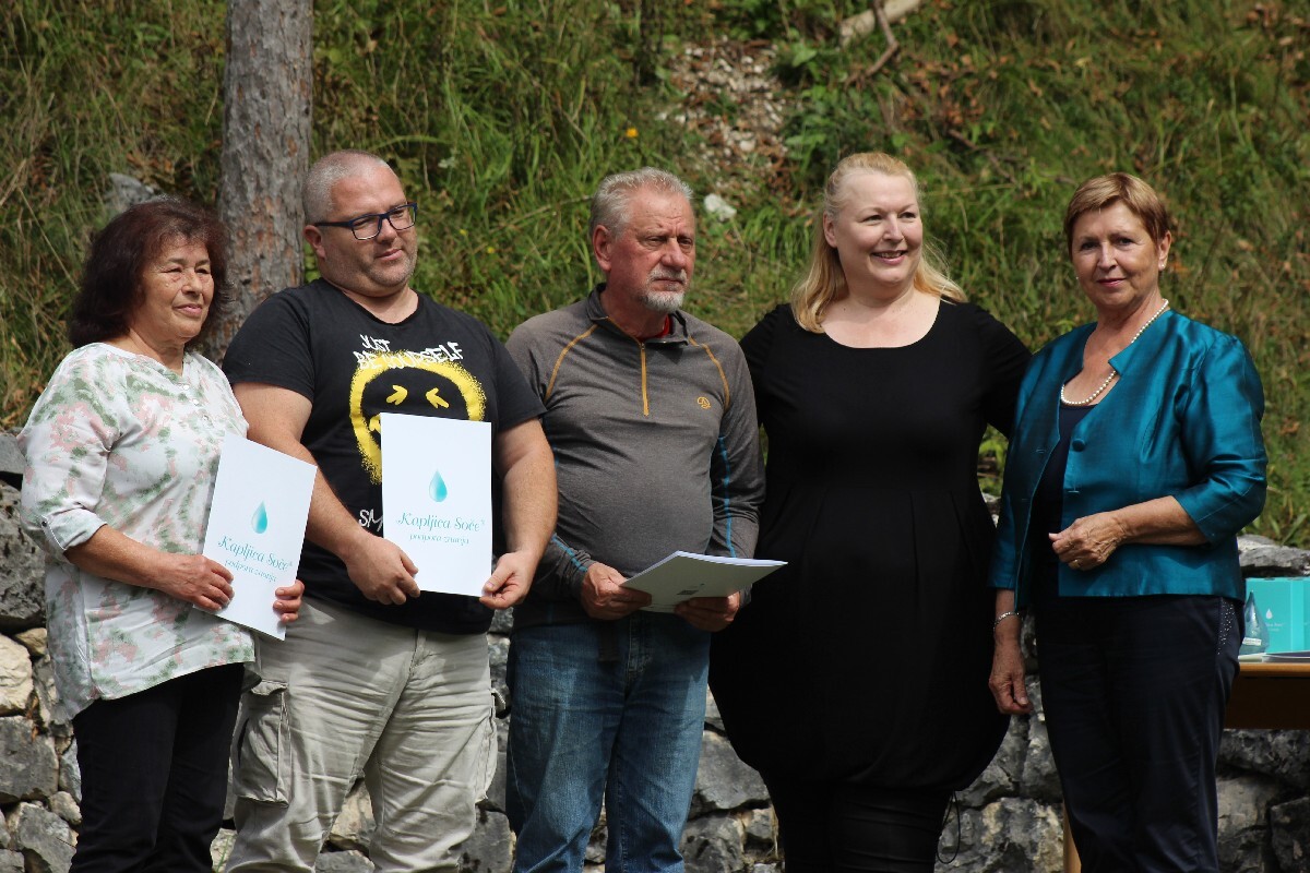 Čisto na koncu so se s posebno zahvalo zahvalili Ivi Devetak, dolgoletni predsednici Društva prijateljev mladine NG, skrbnici sklada Kapljica Soče in upraviteljici Doma Triglavska roža v Trenti in njeni družini.