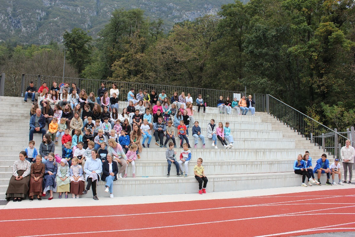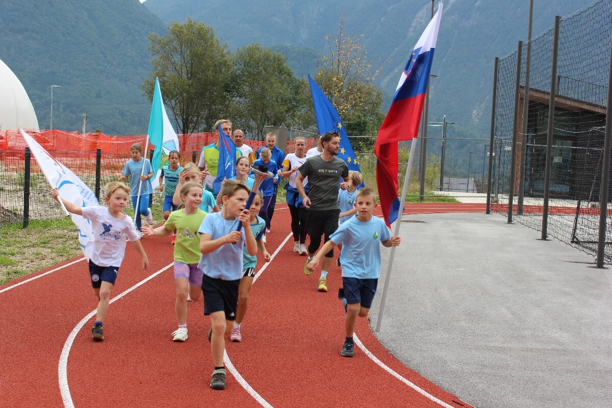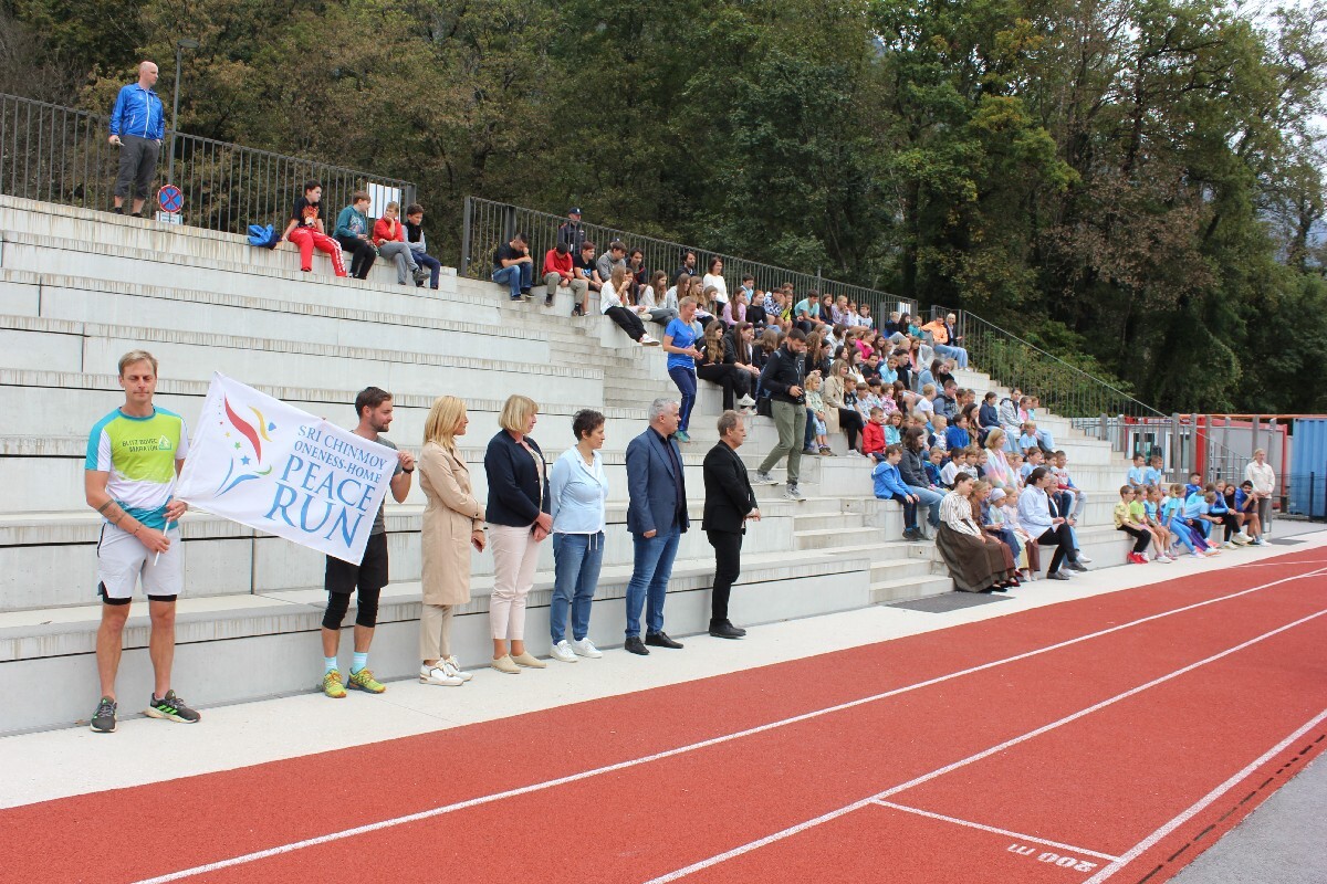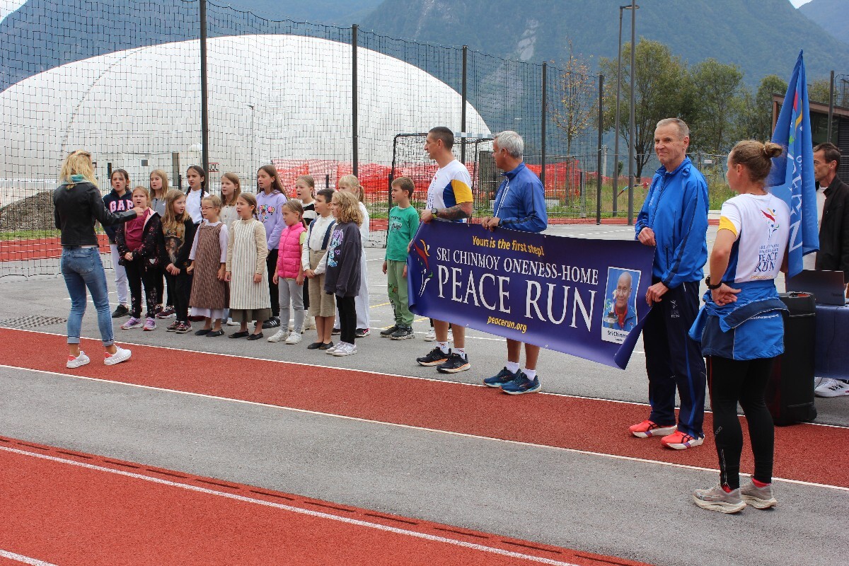 Danes so na športnem igrišču v Bovcu pričakali baklo Teka miru, ob učencih in nekaterih učiteljih pa so nosilce PLAMENICE MIRU pričakali še župan Občine Bovec Valter Mlekuž, direktor občinske uprave Sejad Jušić, Jožica Kavs in Katja Mrakič iz službe za družbene dejavnosti Občine Bovec in ravnateljica OŠ Bovec Denise Šuler Rutar. Sri Chinmoy Oneness‑Home Peace Run, znan kot Tek miru, je največji in najdaljši štafetni tek za mir na svetu. Ustanovil ga je leta 1987 duhovni učitelj Sri Chinmoy. Mednarodna ekipa tekačev nosi plamenico miru, ki simbolizira skupno hrepenenje po miru in prijateljstvu. Plamenica gre iz roke v roko, iz srca v srce, v državah po vsem svetu. Doslej jo je držalo že več milijonov ljudi, ki so izrazili svojo osebno željo po bolj harmoničnem svetu. Mednarodna ekipa tekačev je letos pritekla iz Italije ter nosi plamenico miru skozi Slovenijo v času med 28 in 30. septembrom, danes je prispela tudi do Bovca. Na poti tekači srečujejo politike, župane in druge javne osebnosti, a njihovi najljubši postanki so prav šole, kjer z otroki delijo navdih in sporočilo: vsak izmed nas ima pomembno vlogo pri gradnji prijaznejšega in mirnejšega sveta. Koordinatorka Teka miru za Slovenijo je Narmadyuti Jasmina Ridzi, danes pa je na Športnem igrišču Bovec vse nagovoril mednarodni koordinator Teka miru Devashishu Thorpy.