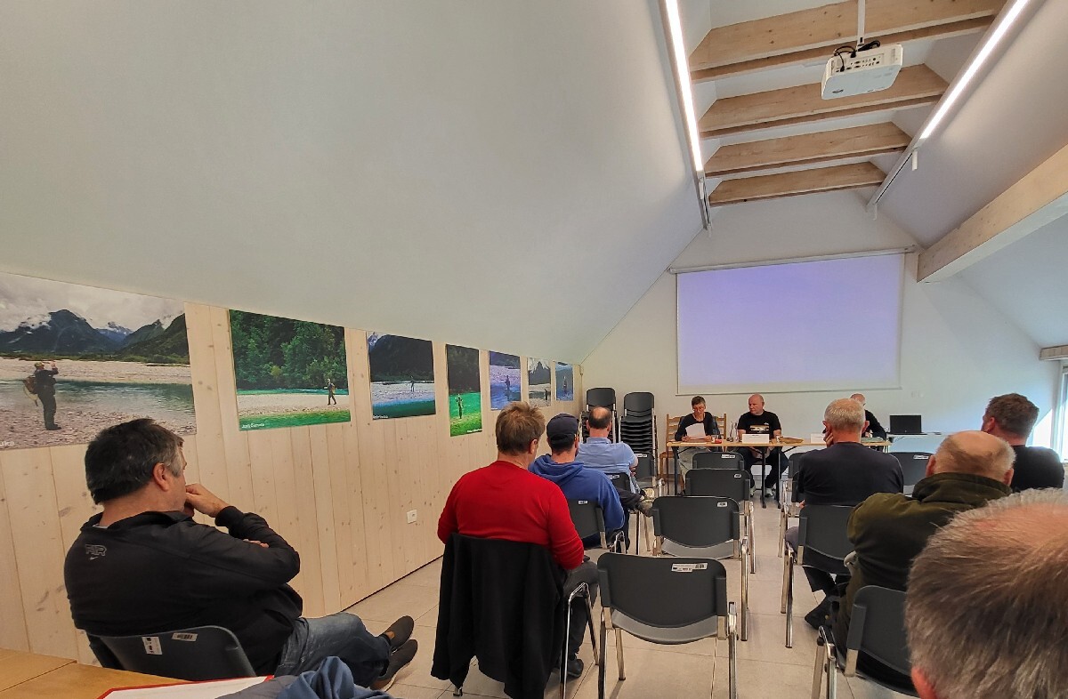 Miha Ivanc, vodja oddelka za ribogojstvo in vode posebnega pomena Zavoda za ribištvo Slovenije je predstavil rezultate letošnjih inventarizacij na Soči in Lepenjici, trend vlaganja soške postrvi med letom 2020 - 2024 v Sočo, Lepenjico in Koritnico, statistiko prodaje ribolovnih dovolilnic ter izzive, s katerimi se Zavod sooča.