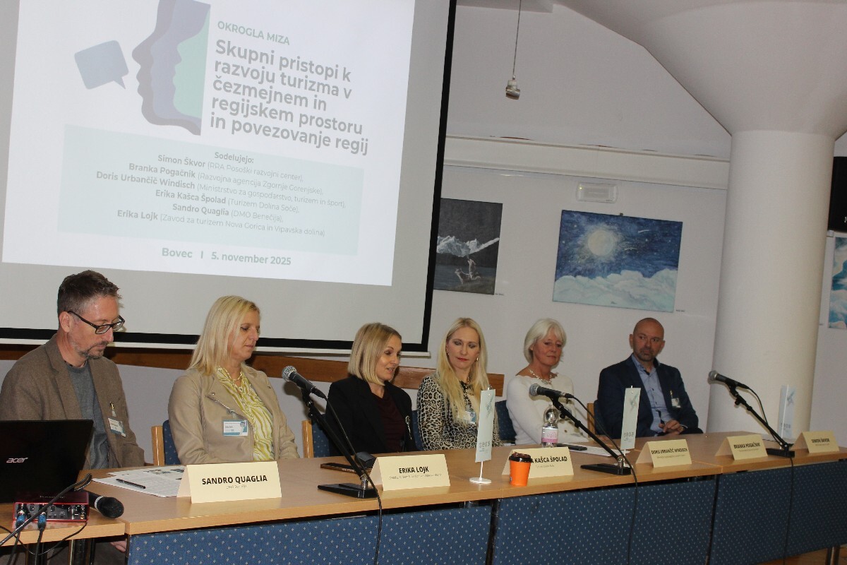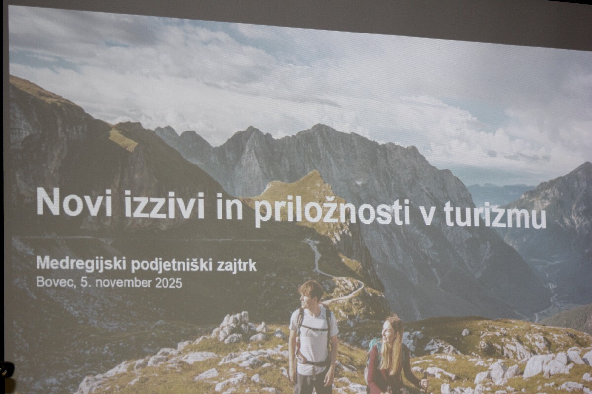 Včeraj, 5. 11. 2025, je v mali dvorani Kulturnega doma Bovec v organizaciji RRA Posoški razvojni center in Razvojna agencija Zgornje Gorenjske potekal medregijski zajtrk »𝐍𝐨𝐯𝐢 𝐢𝐳𝐳𝐢𝐯𝐢 𝐢𝐧 𝐩𝐫𝐢𝐥𝐨𝐳̌𝐧𝐨𝐬𝐭𝐢 𝐯 𝐭𝐮𝐫𝐢𝐳𝐦𝐮 𝐳𝐚 𝐩𝐨𝐝𝐣𝐞𝐭𝐣𝐚 𝐢𝐧 𝐥𝐨𝐤𝐚𝐥𝐧𝐞 𝐚𝐤𝐭𝐞𝐫𝐣𝐞«, ki je bil namenjen razpravi o prihodnosti turizma, inovacijah, trajnosti in povezovanju med destinacijami. Občina Bovec je za izvedbo zagotovila prostor in seveda vso logistiko, vključno z vodjo tehnike Robertom Kokošinom, dogodka pa sta se med drugimi udeležila tudi župan Občine Bovec Valter Mlekuž in direktor občinske uprave Sejad Jušić.