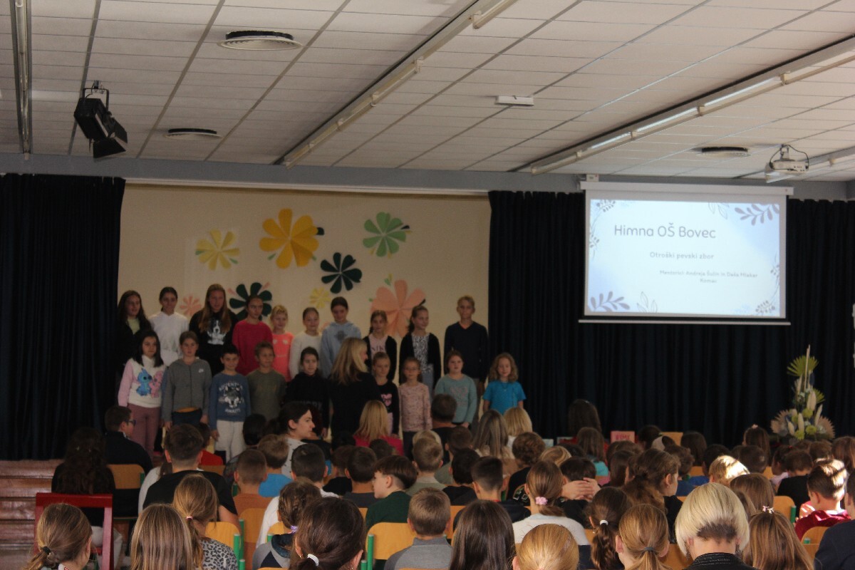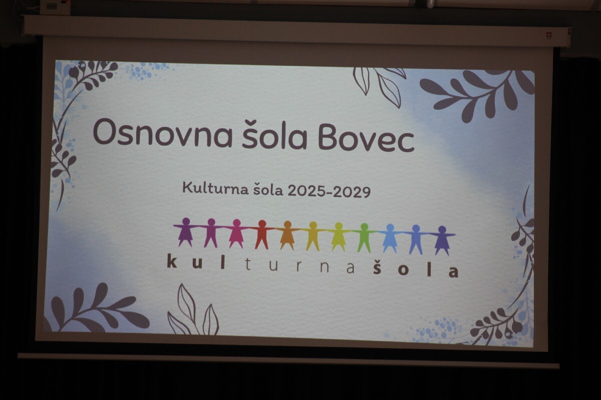 Danes so se učenci in učitelji-mentorice in mentorji, zbrali, da z izobešanjem zastave in postavitvijo priznanja počastijo naziv, ki ga je OSNOVNA ŠOLA BOVEC prejela z letošnjim šolskim letom. Javni sklad Republike Slovenije je namreč OŠ Bovec prepoznal in nagradil njihov trud z nazivom KULTURNA ŠOLA 2025 - 2029. Dogodka sta se med drugimi udeležila tudi župan Občine Bovec Valter Mlekuž in vodja Območne izpostave JSKD Tolmin Silva Seljak. V uvodu je s himno OŠ Bovec v dogajanje popeljal Otroški pevski zbor OŠ Bovec, pod vodstvom mentorice Andreje Šulin, nato pa je vse zbrane nagovorila ravnateljica OŠ Bovec Denise Šuler Rutar. Ocenila je, da je to veliko priznanje za šolo in je rezultat dolgotrajnega dela, predanosti in sodelovanja vseh zaposlenih, učencev, staršev in lokalne skupnosti.