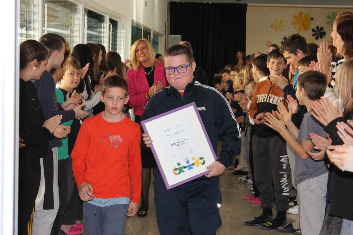 »Zahvala za podporo pa gre tudi Javnemu skladu območne enote Tolmin, in sicer Silvi Seljak in Tinki Černilogar, ki nas vsa leta spodbujata, in skrbita, da informacije pridejo pravočasno do nas ter nam ves čas nudita moralno, organizacijsko in finančno podporo. Še naprej se bomo trudili, da bo vsak izmed nas prispeval kamenček v mozaik kulturnega delovanja naše šole in da bomo skupaj ustvarjali šolo v kateri kultura živi in na katero bomo ponosni,« je svoj nagovor zaključila ravnateljica OŠ Bovec Denise Šuler Rutar in vse povabila v preddverje večnamenskega prostora, kamor sta učenca skozi špalir sošolk in sošolcev prenesla priznanje in ga skupaj z ravnateljico obesila zraven zastave.