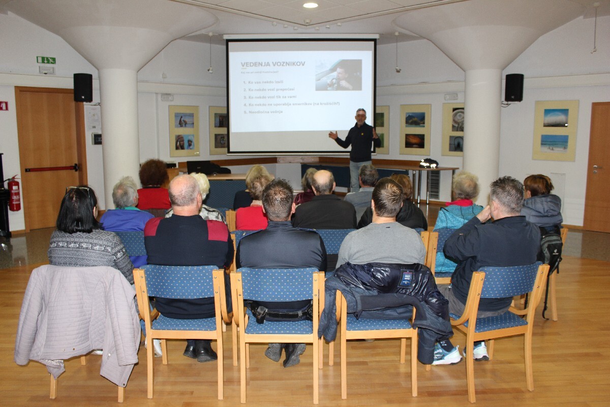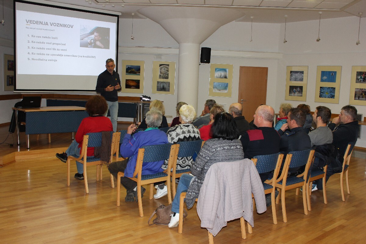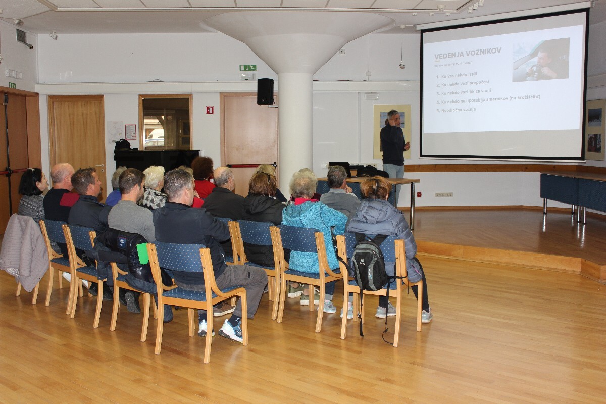 V Kulturnem domu Bovec je danes, 14. novembra 2025, potekalo preventivno predavanje, namenjeno starejšim voznikom in voznicam, ki želijo ostati čim dlje varni, samozavestni in dejavni v prometu. Dogodek je pripravila Občina Bovec v sodelovanju s Svetom za preventivo in vzgojo v cestnem prometu. Udeleženci so s svojo številčnostjo ponovno pokazali, da jim ni vseeno, in želijo poskrbeti tako za lastno varnost kot tudi drugih udeležencev v prometu. Ta projekt je namenjen prav voznikom in voznicam z izkušnjami, ki imajo tisto, česar mladi še nimajo. To so občutek, zrelost in kilometrina. A ker se promet stalno spreminja in ga urejajo nova pravila, nove tehnologije, nove pasti na cesti in še kaj, je prav, da tu in tam osvežijo znanje, preverijo kakšno stvar in slišijo kakšen dober nasvet. Namen današnjega srečanja zato ni bil nikogar učiti tistega, kar že vedo, ampak pomagati, da se bodo na cestah še naprej počutili varno in samozavestno. Varnost v prometu ni samo stvar zakonov in kazni – je stvar spoštovanja, odgovornosti in tudi medsebojne pomoči.
