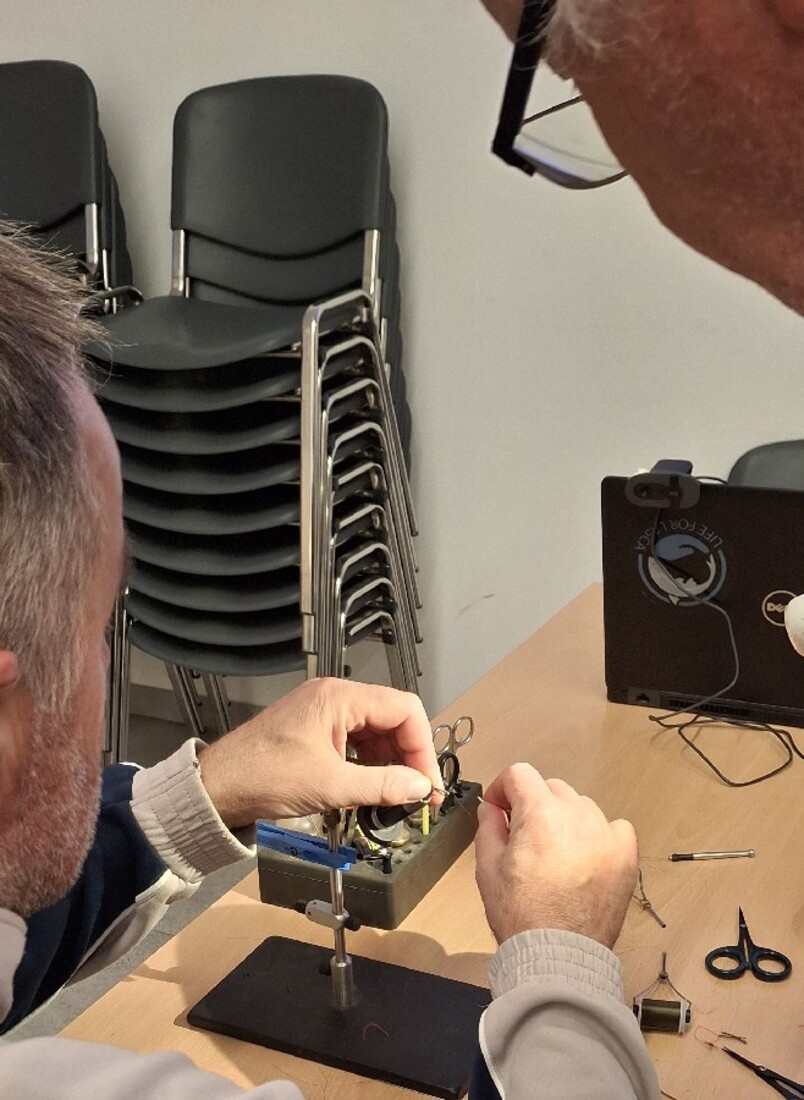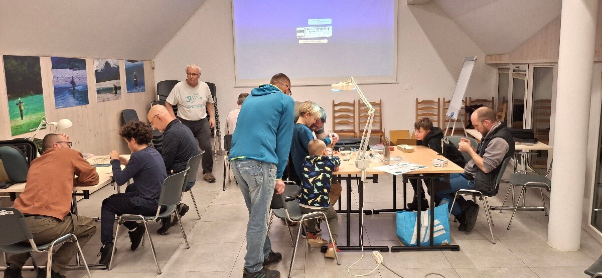 Včeraj, 27. 11. 2025, so se v sejni sobi Ribiške hiše na Kalu Koritnici še zadnjič v tem letu zbrali na dogodku v sklopu projekta Hiša doživetij divje reke – Breka 3. Tokrat so se preizkusili v izdelovanju suhih muh za ribolov. Tomaž Modic in Tone Tavčar iz Zavoda za ribištvo sta udeležence popeljala v svet vezanja muh.