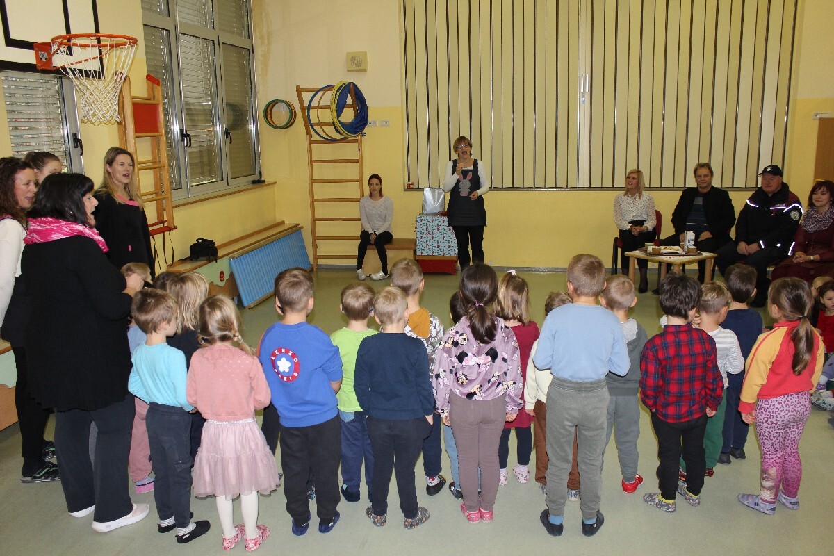 V Vrtcu Bovec je bilo danes veselo, saj je vrtčevske otroke župan Občine Bovec Valter Mlekuž v družbi predsednika Sveta za preventivo in vzgojo v cestnem prometu Občine Bovec in redarja Janka Volariča, ki je darilo tudi pripravil, in ravnateljice OŠ Bovec Denise Šuler Rutar, obdaril z zanimivim paketom. Najprej je namen obiska z darilom predstavil Janko Volarič in nato besedo predal županu. Mlekuž je poudaril, da je december najbolj vesel in razigran mesec, prazniki pa eni najbolj doživetih v letu. Vsem otrokom je zaželel, da bi v krogu svojih družin in v družbi prijateljčkov preživeli res lepe praznike in se v decembru tudi poveselili. Ker je to mesec, ko prihajajo na domove, v vrtce in šole tudi kar trije dobri možje, je prav, da jim tudi Občina Bovec malo pomaga. Letos je to prvič v Vrtcu Bovec, prihodnje leto pa morda kje drugje. Otroci pa obiskovalcem niso ostali dolžni in so jim, seveda pod skrbnim očesom in vodstvom njihovih vzgojiteljic, pripravili krasen, na trenutke tudi hudomušen kulturni program.