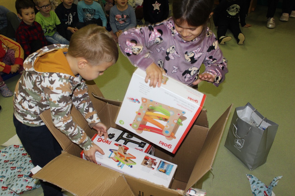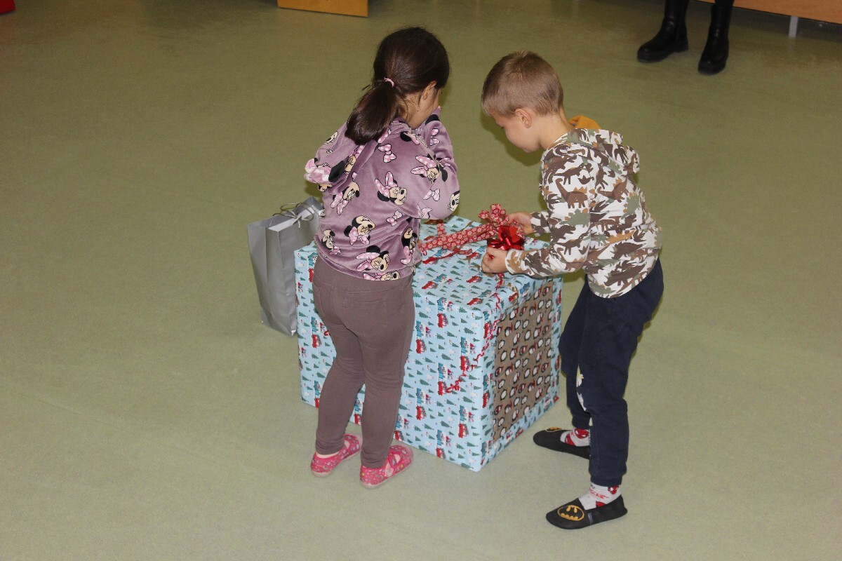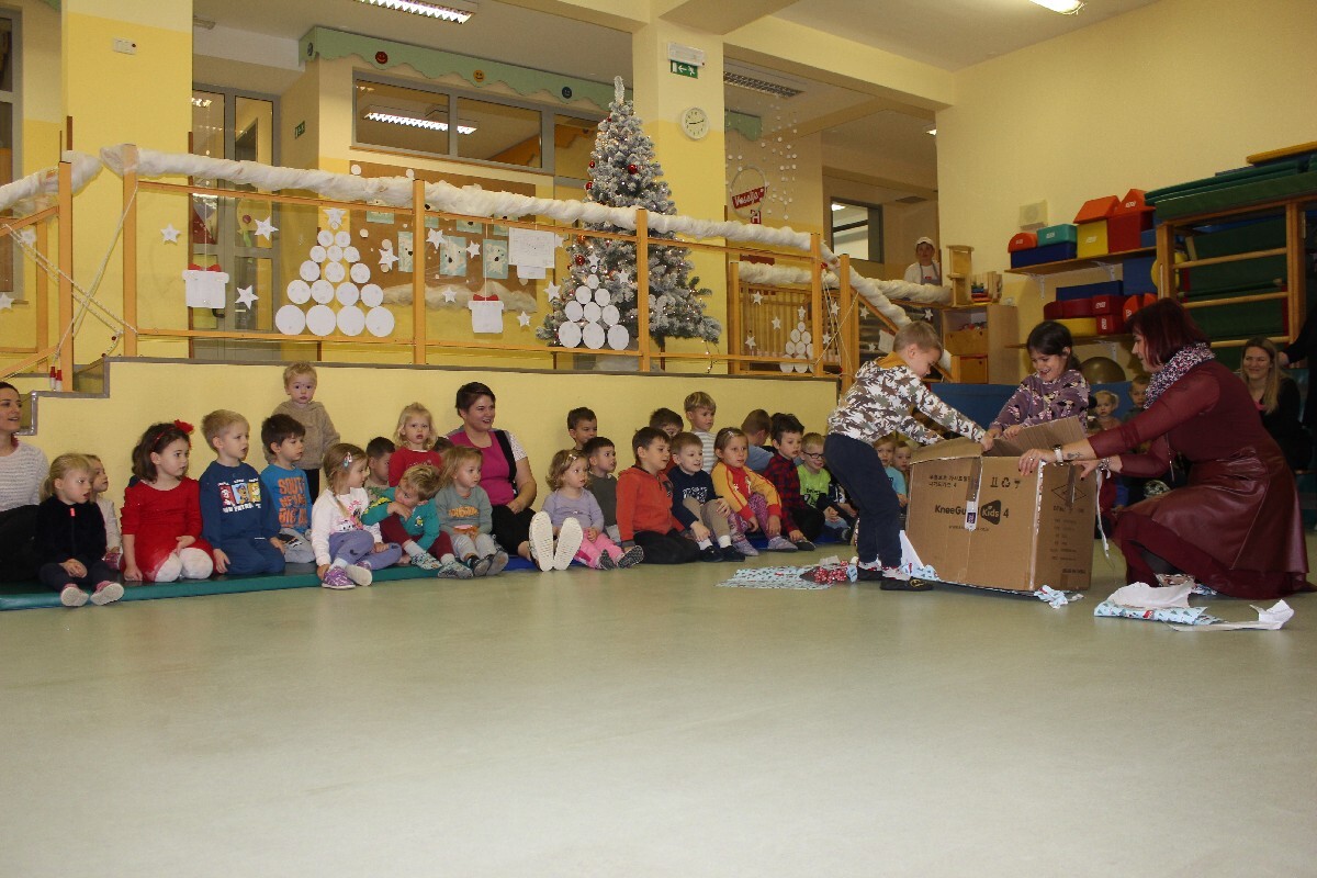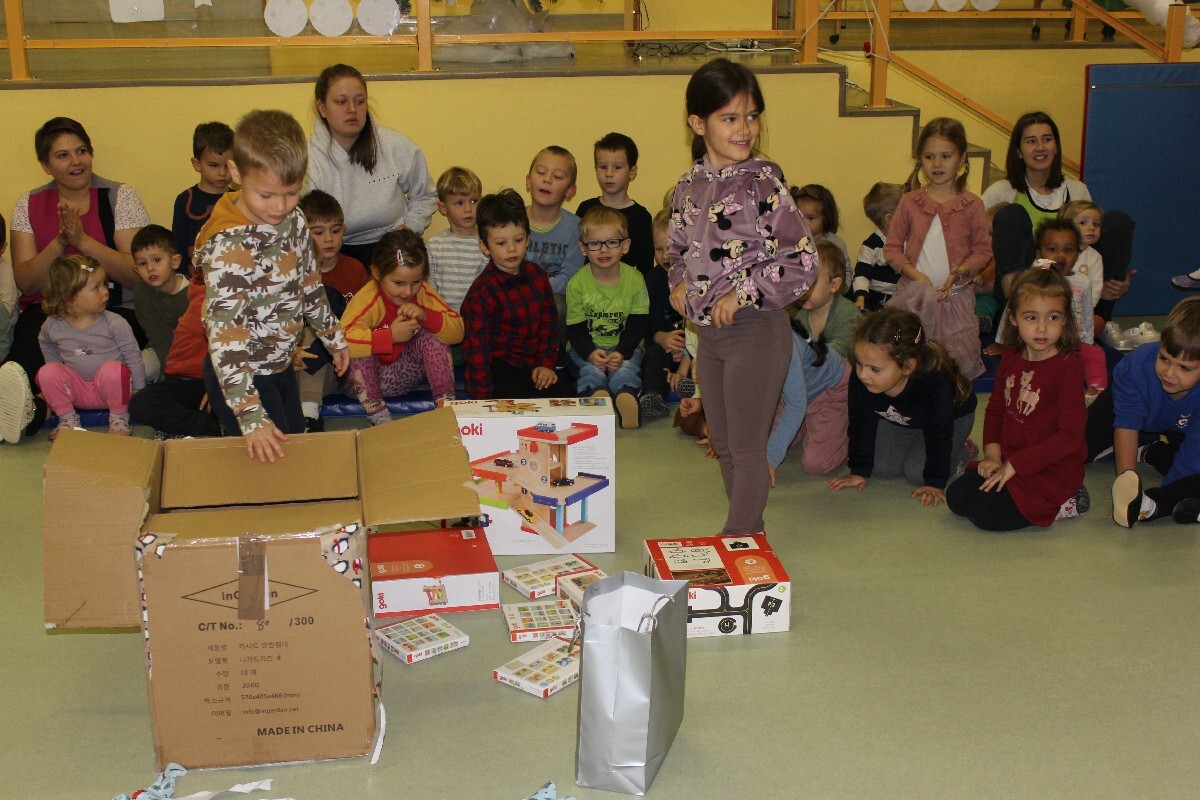 Otroci so z zanimanjem opazovali, kako dva vrtčevska otroka odpirata lepo zavit paket, ko pa so se pokazale prve igrače, so sen navdušeno razveselili koristnih daril.