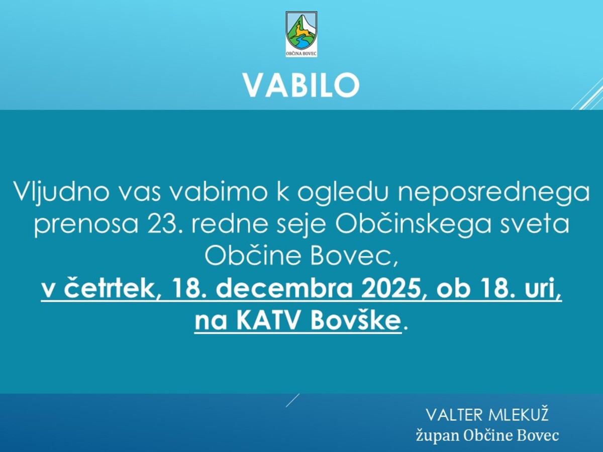 NEPOSREDNI PRENOS 23. REDNE SEJE OS OBČINE BOVEC