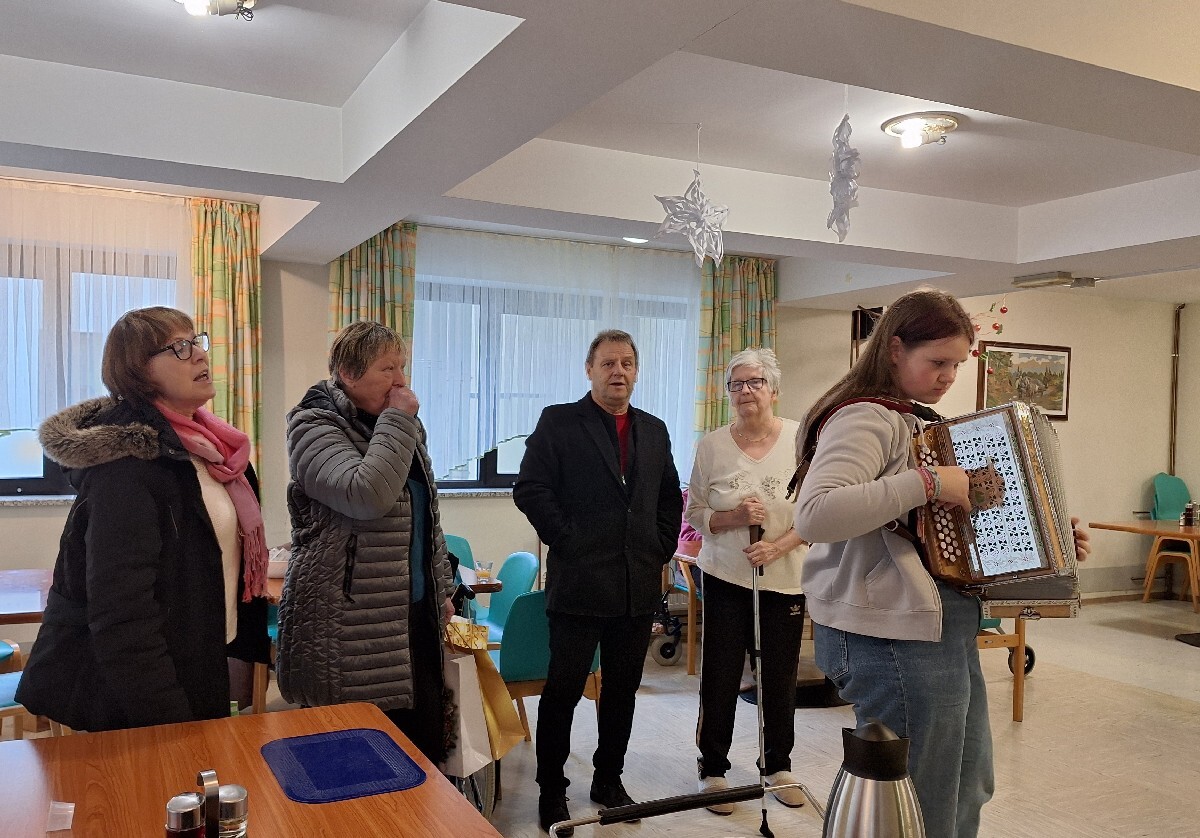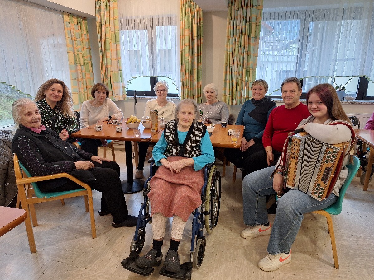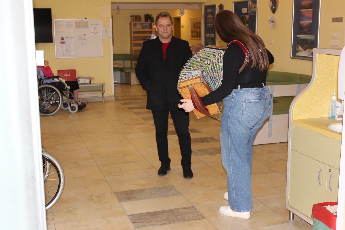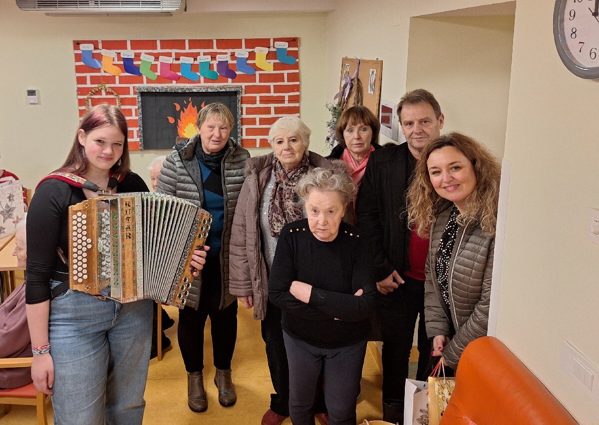 Včeraj je župan Občine Bovec Valter Mlekuž v spremstvu sodelavke Tjaše Kranjc Trebše, predstavnic OO RK Bovec, Župnijske Karitas Bovec, OO Društva upokojencev Bovec in bovške harmonikarke Nataše Berginc obiskal stanovalce z Bovškega v Domih upokojencev Podbrdo v Podbrdu in Tolminu. V Podbrdu je 5 stanovalcev, v Tolminu pa 8. Še posebej veselo je bilo v Podbrdu, kjer so se v prijetnem druženju ob zvokih harmonike tudi zavrteli, veliko več od samih priložnostnih darilc pa je bil vreden prav čas za pogovor in druženje z njimi. Mlekuž je med drugim povedal tudi, da za gradnjo DSO Bovec zdaj izbirajo izvajalca in se bo takoj po izbiri začela tudi gradnja. V Tolminu so stanovalce obiskali v njihovih sobah, veselo pa je bilo tudi v večnamenskem prostoru Doma. Vsi obiskovalci so stanovalcem obeh Domov izrekali najlepše želje in jim zaželeli mirne praznike s kakšnim priboljškom.