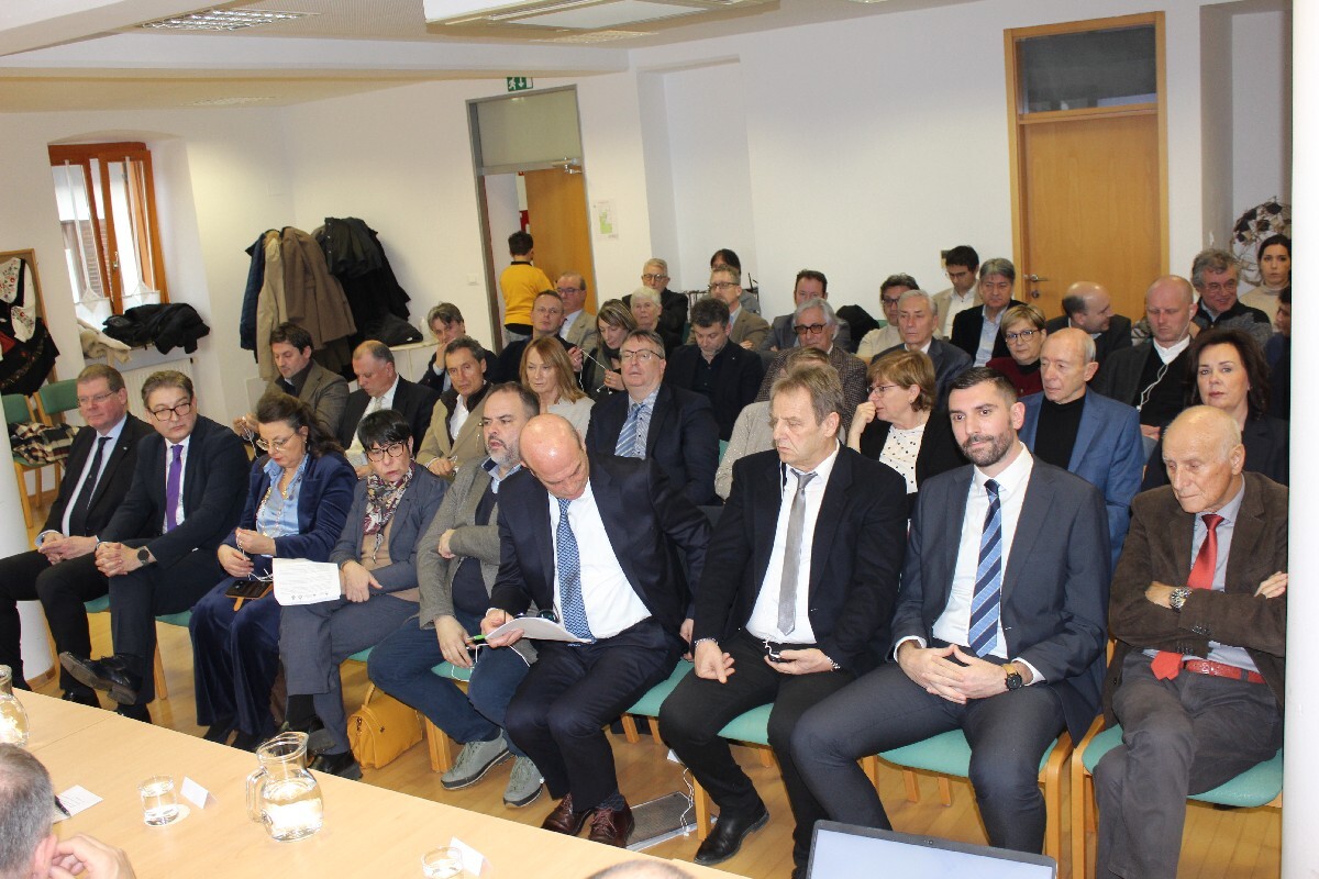 V soboto, 17. januarja 2026, je, tokrat v Kobaridu, potekalo že 54. tradicionalno novoletno srečanje Slovencev Videmske pokrajine in Posočja, ki ga vsako leto v drugi Občini pripravijo posoške Občine Bovec, Kobarid in Tolmin ter Upravna enota Tolmin. Že po tradiciji se je dogajanje začelo z delovnim srečanjem, in sicer v Domu Andreja Manfrede, letos pa še posebno pomembno, saj so predstavniki Občin na obeh straneh meje in gorskih skupnosti podpisali Pismo o nameri za ustanovitev Evropskega združenja za teritorialno sodelovanje (EZTS) z delovnim naslovom Skupne Doline – Valli Condivise. Delovnega srečanja so se udeležili podpredsednik Vlade Republike Slovenije in minister za Slovence v zamejstvu in po svetu Matej Arčon, podpredsednik DZ RS Danijel Krivec, Generalni konzul v Republiki Italiji Gregor Šuc, senatorki v italijanskem parlamentu Tatjana Rojc in Francesca Tubetti, vodja Kabineta predsednika Dežele FJK Sandra Sodini, ki je opravičila odsotnost predsednika Massimiliana Fedrige z njegovim dopisom in spodbudo ter popolno podporo Dežele FJK in njegove podpore k ustanovitvi EZTS, deželni svetnik FJK Marko Pisani, podpisniki Pisma o nameri župani Občin Bovec, Kobarid, Tolmin in Brda (župan Občine Kanal ob Soči se je opravičil) s slovenske strani Valter Mlekuž, Marko Matajurc, Alen Červ in Franc Mužič, z italijanske strani pa županji Občin Čedad in Prapotno Daniela Bernardi in Mariaclara Forti, predsednik Gorske skupnosti Nadiških in Terskih dolin Antonio Comugnaro in predsednik Gorske skupnosti Železne in Kanalske doline Ivan Buzzi, številni župani, podžupani in predstavniki drugih Občin, Walter Bandelj (Svet Slovenskih Organizacij), Nives Cossutta in Ivan Ciccone (Kulturno Gospodarska Zveza), Anna Wedam (Svet Slovenskih Organizacij), direktor PRC Simon Škvor in Renata Purpura (Civiform) ter drugi predstavniki posoških in zamejskih občin, slovenskih organizacij v Italiji ter političnega in diplomatskega prostora.