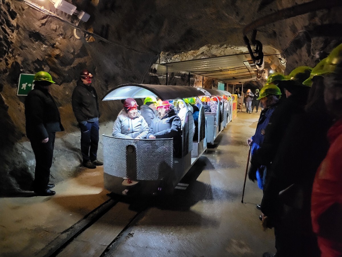 Vagoni so bili nadgrajeni, da izpolnjujejo nove varnostne standarde, in bodo lahko naenkrat prepeljali 25 obiskovalcev nekaj več kot kilometer daleč v globino rudnika, po tirnicah, ki dosežejo srce Kapele svete Barbare (Camerone di Santa Barbara), velikega podzemnega prostora, posvečenega zavetnici rudarjev, ki pripoveduje o duhovnosti rudarjev in njihovi globoki povezanosti z goro.