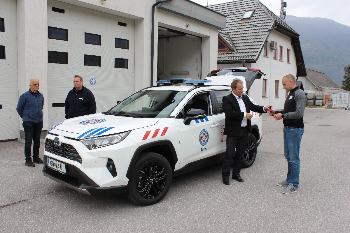 Načelnik Društva GRS Bovec Robert Vončina je danes od župana Občine Bovec Valterja Mlekuža tudi uradno prevzel novo vozilo Toyota RAV4. Stara Dacia Duster ni več zadoščala za namene številnih zahtevnih reševanj, ki jih izvaja Društvo GRS Bovec na izjemno zahtevnih terenih, zato je bil med Občino Bovec in Društvom GRS Bovec hitro sklenjen dogovor za nakup novega vozila. Občina Bovec je za nakup vozila odštela 39.500,00€, Društvo GRS Bovec pa je za nadgradnjo dodalo še 6.000,00€. Župan Občine Bovec Valter Mlekuž ob tem še enkrat poudarja, da on sam in Občina Bovec vedno podpirata vse reševalne službe znotraj sistema Civilne zaščite, saj so ob različnih nesrečah številna življenja največkrat odvisna prav od hitrega posredovanja požrtvovalnih reševalcev, ki pa svoje prostovoljno delo lahko opravljajo le z ustrezno opremo. Primopredaje so se danes ob županu Občine Bovec Valterju Mlekužu in načelniku Robertu Vončini udeležili še podžupan Erik Cuder, direktor Uprave Občine Bovec Sejad Jušić in poveljnik OŠ CZ Edi Melinc. Stara Dacia Duster bo prešla v last Občine Bovec in bo glede na starost služila za službene prevoze v bližnji okolici.