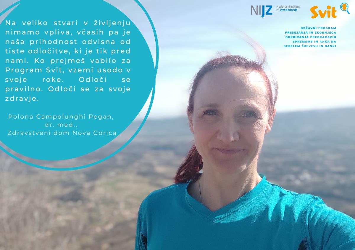 »Program Svit je državni program presajanja in zgodnjega odkrivanja predrakavih sprememb in raka na debelem črevesu in danki. V program so vabljeni vsi prebivalci Slovenije, stari med 50 in 74 let, vsaki dve leti. Pomembno je, da se vabljeni odzovejo vabilu vsakič, ko ga prejmejo, saj en negativen izvid ne pomeni, da nikoli ne bodo zboleli za to vrsto raka. V program se še vedno vsaka 3. oseba, ki prejme vabilo, ne odzove (odzivnost v Sloveniji je približno 63 %), kljub temu pa nam je uspelo s pomočjo Programa Svit ustaviti trend naraščanja pojavnosti raka na debelem črevesu in danki in krivuljo pojavnosti prvič po letu 1950 obrniti navzdol, kar je izjemen uspeh,« sporočajo z NIJZ OE Nova Gorica.