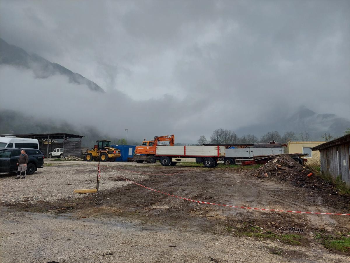 Ves material, ki je bil nakopičen na omenjenem mestu, je bil odpeljan na deponijo v Tolmin, prostor pa bo v dogovoru z Občino Bovec za dogovorjen čas namenjen za logistične potrebe omenjene agencije PAKT MEDIA d.o.o. pri snemanju.