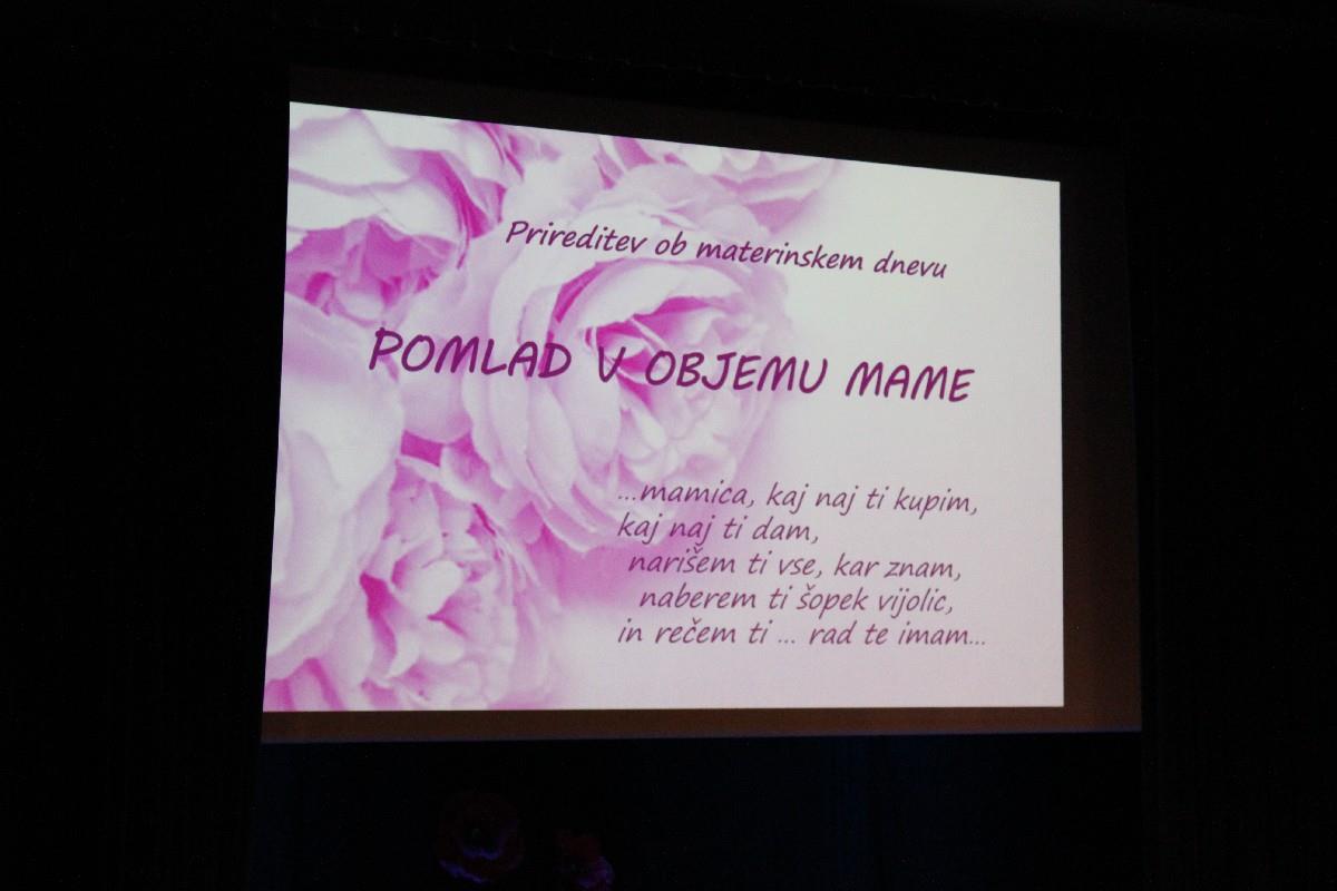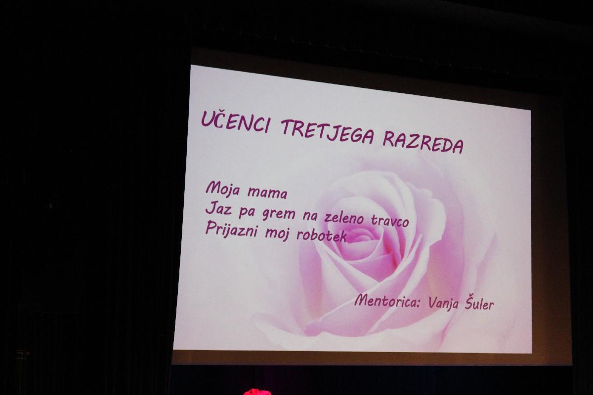 »Ni lepšega, kot to, da prireditev oblikujejo naši najmlajši. Če bi bili vsi tako iskreni, kot so iskrice v očeh teh otrok, potem bi bil ta svet veliko lepši. To vedno rad poudarim. Vsak otrok najraje nastopi pred svojimi starši, sorodniki in znanci in pokaže, kaj vse so se naučili. Spoštovane mame, ob tem prazniku, ki je tik pred vrati, vam tudi jaz iskreno čestitam. Samo ena je mama. K njej se zatečeš, ko si vesel in ko si žalosten. Tudi ko mam že ostari in postane betežna, vedno najde prave besede zate, besede, ki te krepijo. Mamam še enkrat vse čestitke, najmlajšim pa zahvala, z željo, da bi nas še naprej tako razvajali in nas presenečali s kulturno tako bogatimi prireditvami. Dragi starši, bodimo ponosni na naše otroke.«