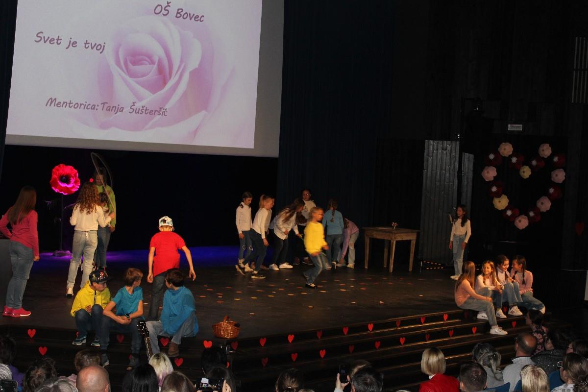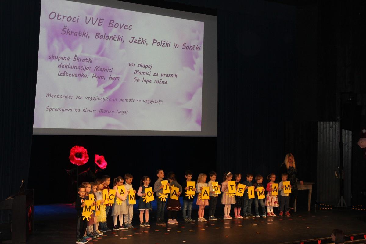 Ob materinskem dnevu so vrtčevski otroci in učenci Osnovne šole Bovec ter podružničnih šol v Soči in na Žagi, v Bovcu pripravili krasen kulturni večer, ki so ga poimenovali Pomlad v objemu mame.