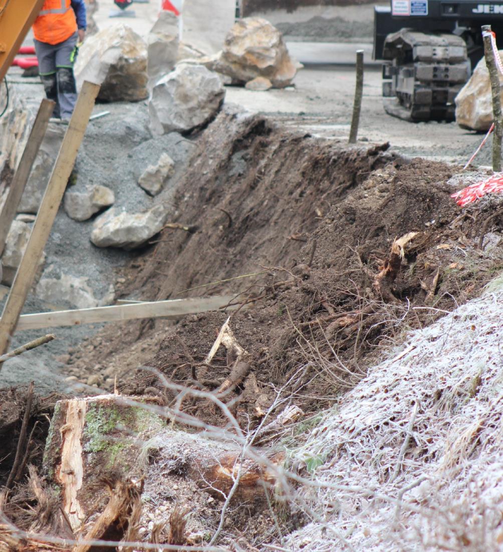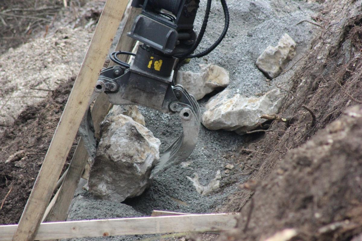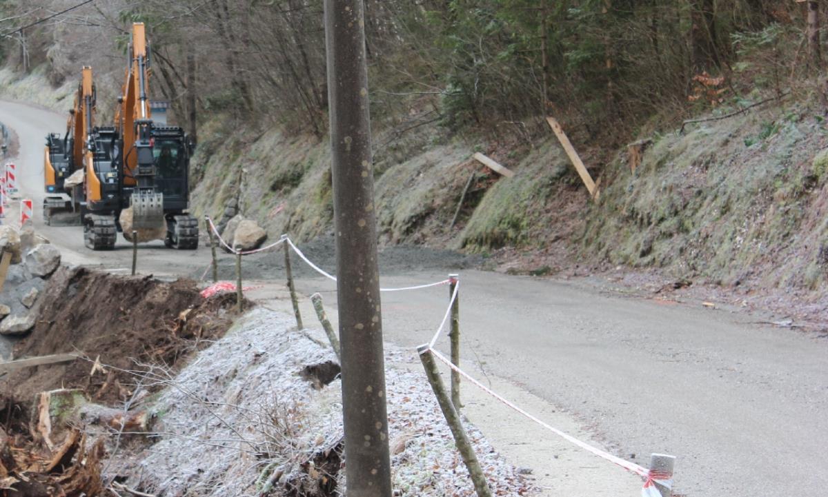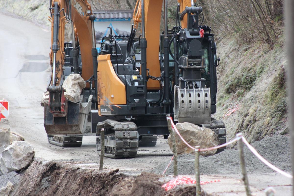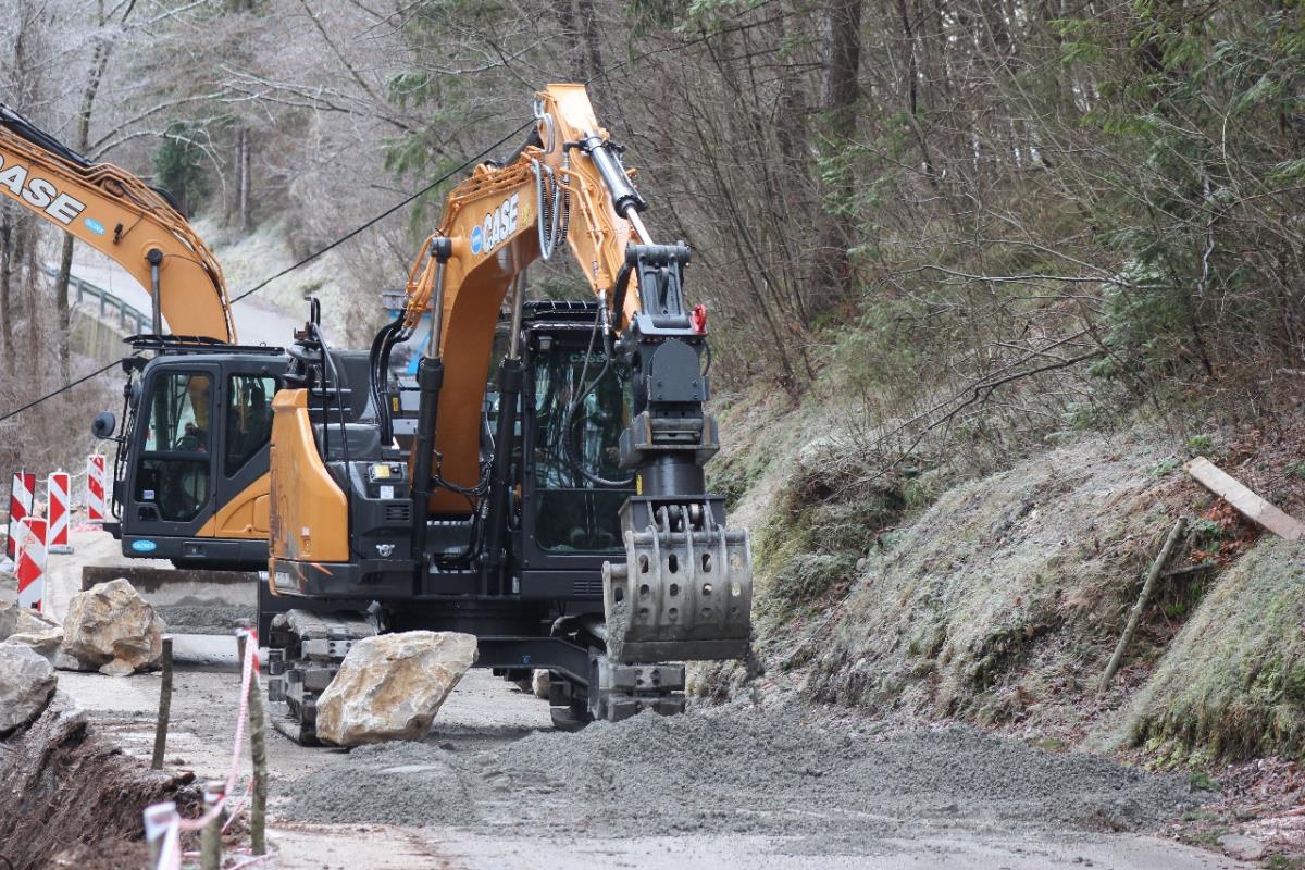 Gradnja dveh kamnito betonskih zložb dolžine 91 m in 125 m na javni poti Bovec – Vodenca, ki je del projekta rekonstrukcije te javne poti, lepo napreduje.