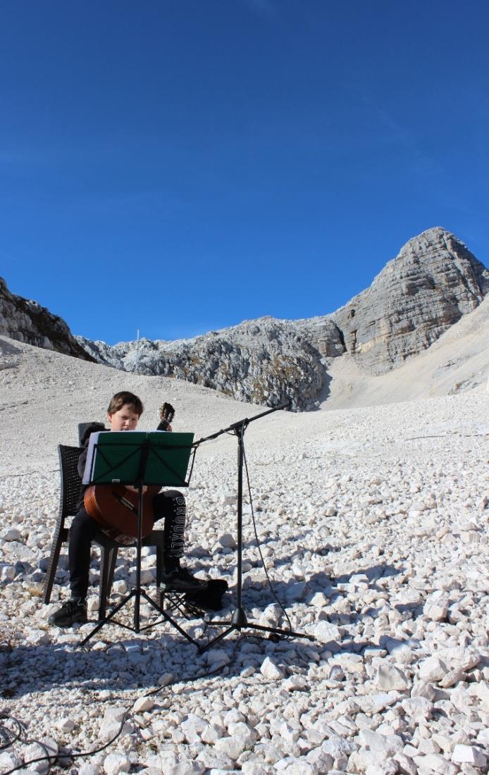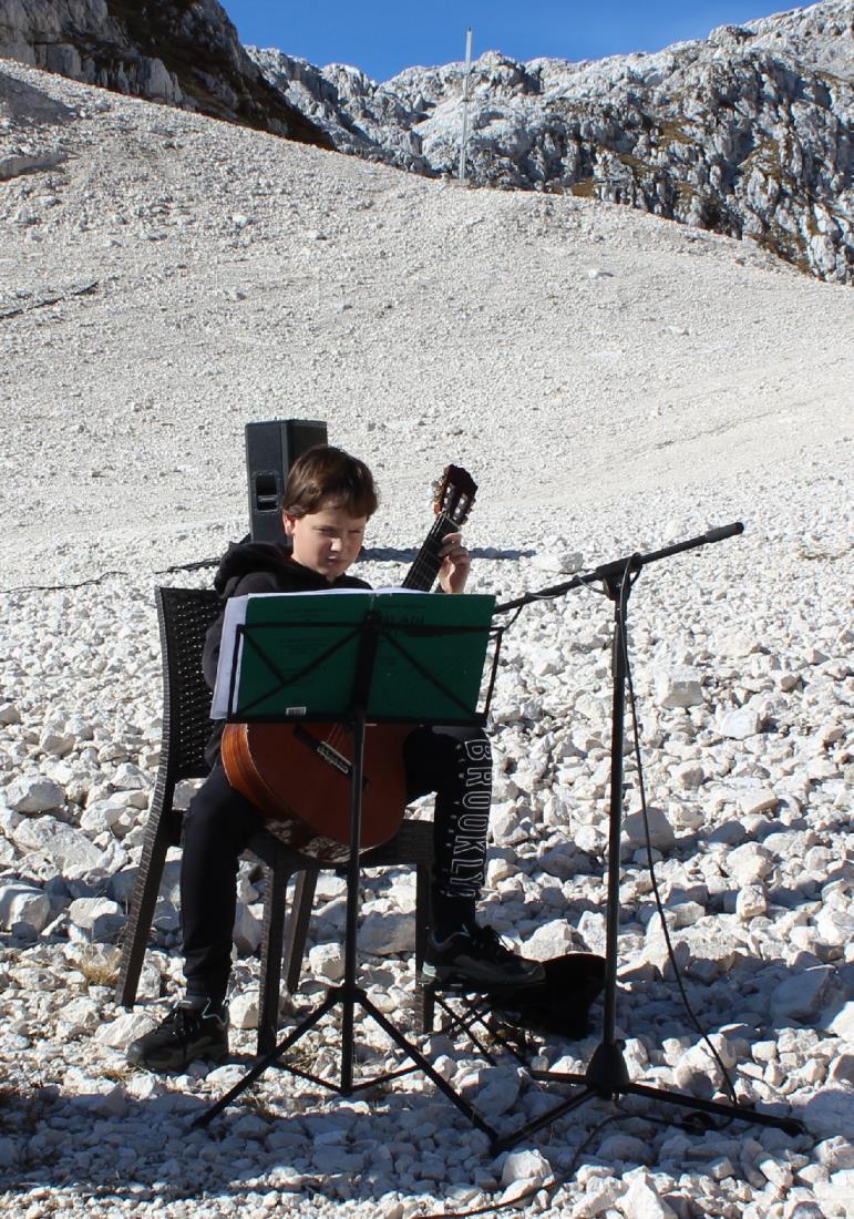 V spominsko obeleženje nas je na kitari vpeljal Andrej Bizjak, učenec Glasbene šole Tolmin, katerega mentorica je Mirjana Antih Čebokli, povezovalec programa Milan Štulc pa je v uvodu spomnil, da bo to nedeljo, 30. 10., minilo 50 let od helikopterske nesreče, ki se je zgodila prav na mestu, kjer se je odvijala spominska slovesnost.