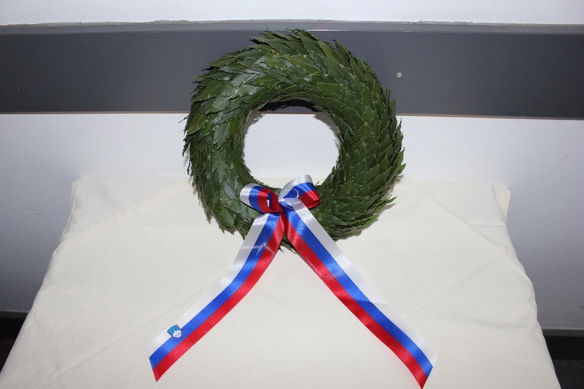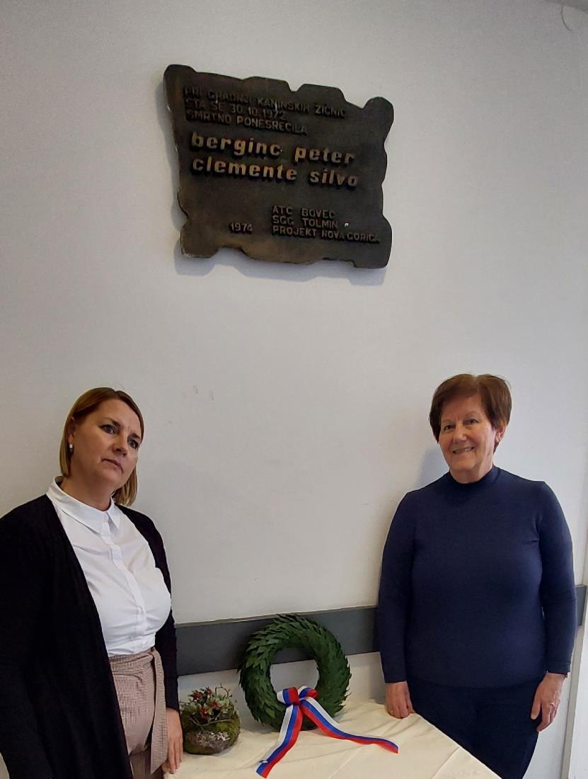 V nadaljevanju je, po še enem izvrstnem glasbenem vložku Andreja Bizjaka na kitari, sledilo polaganje spominskega venca pod spominsko tablo pokojnima, venec pa sta položili hčerka preminulega gospoda Petra Berginca, gospa Metka Dolinšek in hčerka preminulega gospoda Silva Clementeja, gospa Katarina Clemente. Pokojnikoma so se zbrani poklonili z minuto zbranosti.