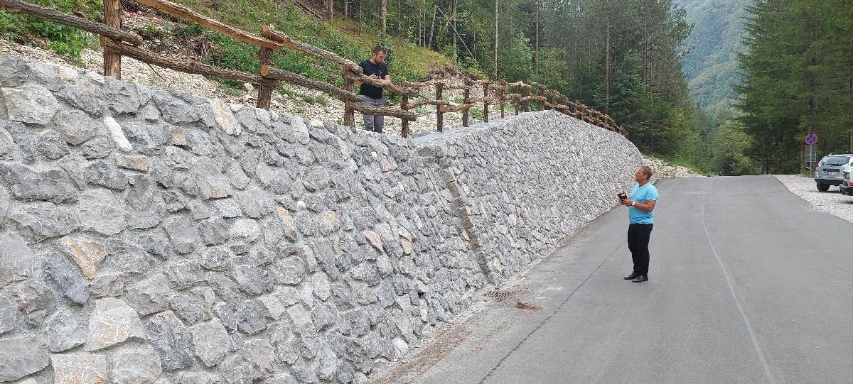 Zakaj je prišlo do poplavljanja cestišča na novozgrajenem odseku ceste, sta si danes ogledala župan Občine Bovec Valter Mlekuž in odgovoren za spremljanje investicij pri Občini Bovec Jernej Leban. Ugotovitve so preproste, in sicer je po dolgotrajnem sušnem obdobju ob močnem nalivu meteorna voda s pobočja nad zidom naplavila večjo količino suhljadi, pomešane z iglicami iglavcev, kar je zamašilo cestno odtočno rešetko. Odtoki so sicer pravilno izvedeni in dimenzionirani, kljub temu pa je zaradi neljubega dogodka predlagana zamenjava obstoječe z večjo rešetko, pobočje pa je treba utrditi na način, da voda z njega ne bo več odnašala materiala.