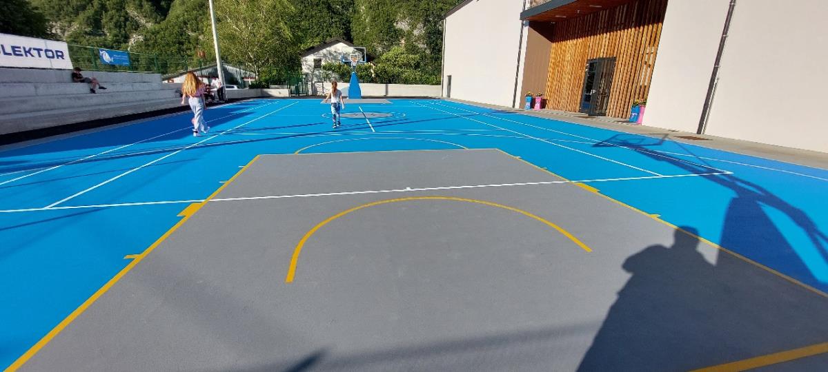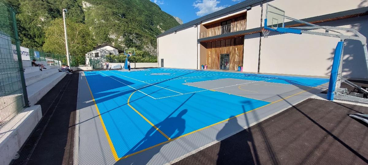 Ob gasilskem domu z večnamensko dvorano na Srpenici je staro igrišče popolnoma prenovljeno. Urejene so tribune, igralno površino so najprej preplastili z grobo in asfaltno prevleko, ob ugodnih vremenskih razmerah in stabilnih temperaturah pa so položili še posebno zaključno plast.