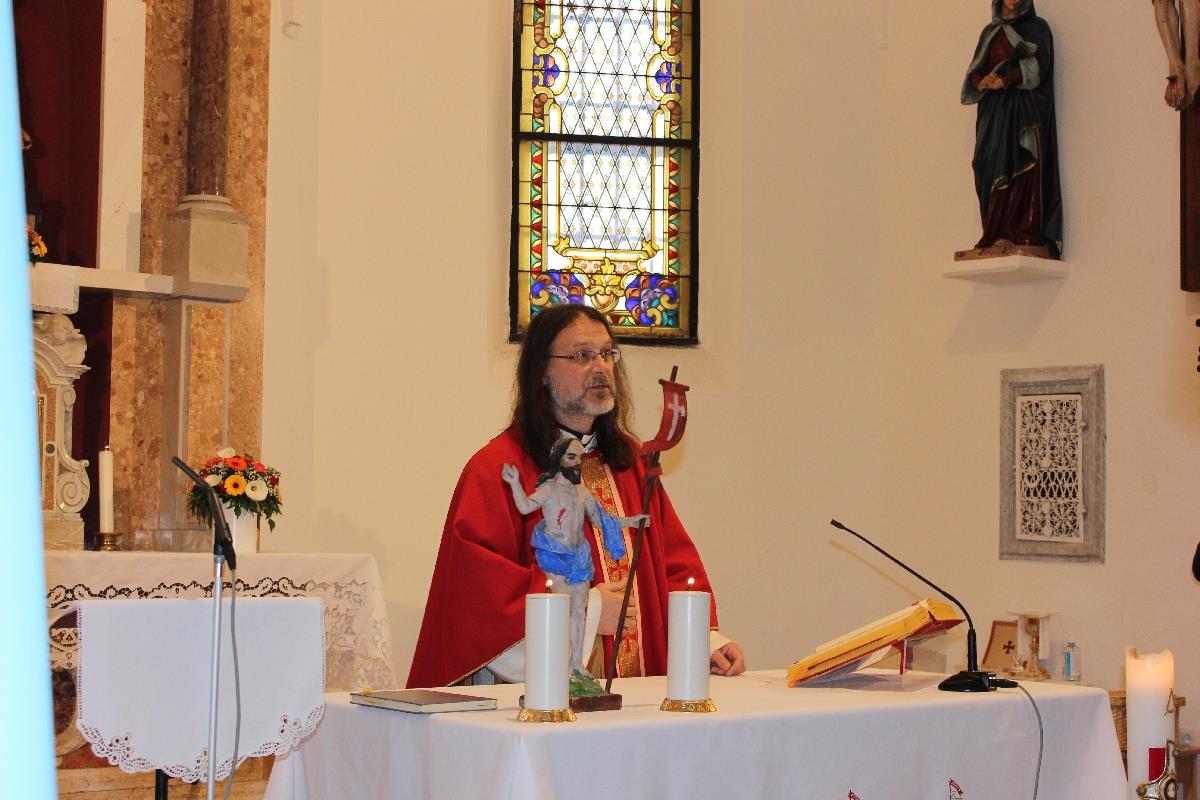 Gasilci prijateljskih prostovoljnih gasilskih društev iz Slovenije, Italije in Avstrije, so se skupaj z domačimi gasilci najprej postrojili pred starim gasilskim domom in se na ta način od njega tudi simbolično poslovili. Odkorakali so do srpeniške cerkve Sv. Florjana, in se tam udeležili svete maše, pridružil pa se ji je tudi minister za Obrambo Matej Tonin.