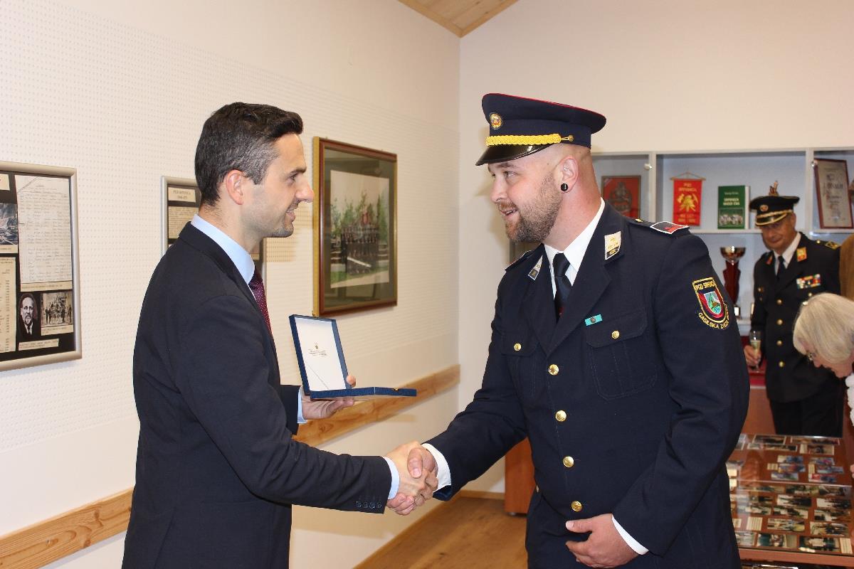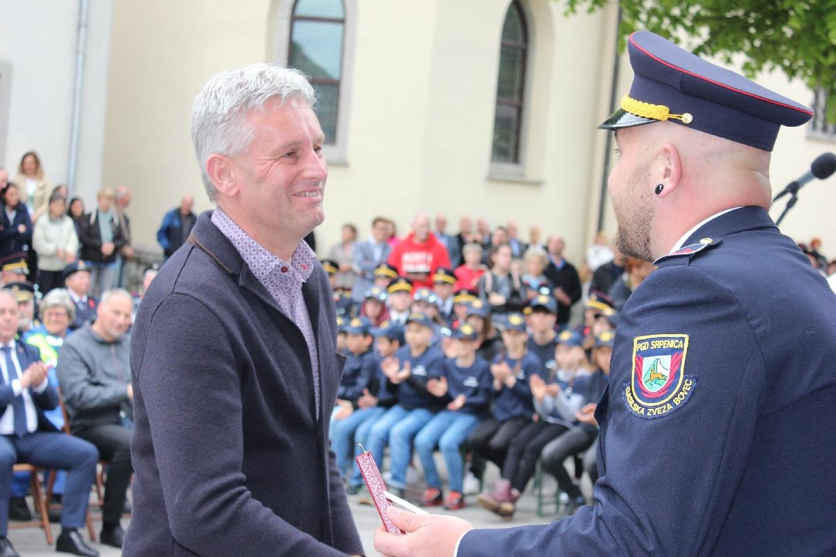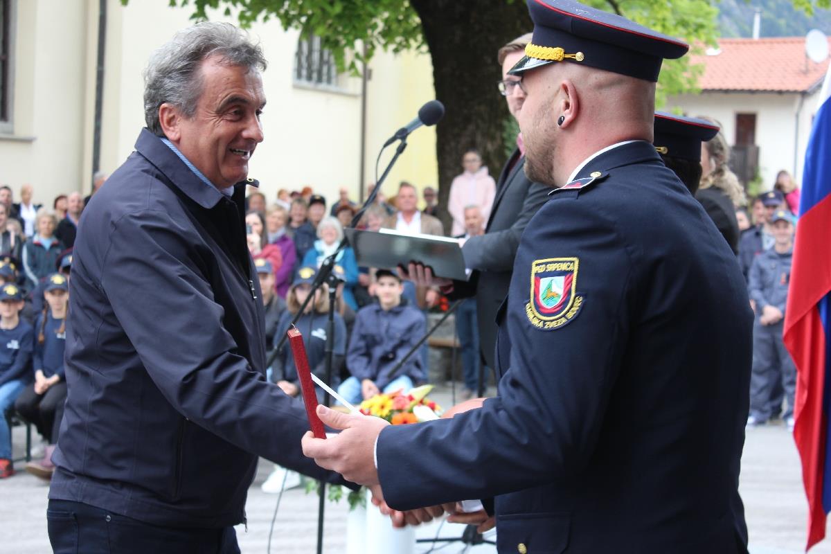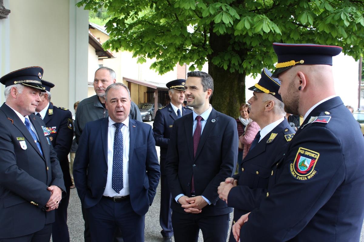 »Ob današnji slovesnosti iskreno čestitam najprej pogumnemu vodstvu, da peljete gasilstvo v smeri prisotnosti mladih, da delate na podmladku, ki vas bo čez nekaj let nadomestil in bo vašo dolgoletno tradicijo krepil naprej. Iskrene čestitke tudi tebi, Danijel in tvoji ekipi, ki ste zagrizli v ta milijonski projekt. Po Sloveniji opažam veliko skepse ali se lotiti projektov ali ne. Marsikdaj nas sprašujejo tudi, zakaj država ne investira v te projekte. Slovenija ima več kot 1300 PGD. Financiranje enega projekta bi potegnilo za sabo projekte vseh ostalih društev, kar pa je za državo finančno nevzdržno. Zato je pomembna skrb lokalnih skupnosti in zato hvala lepa tudi vam, župan Valter Mlekuž, da ste prisluhnili potrebam in podprli projekt. Kjerkoli po Sloveniji sem hodil, sem se zavedel, da se je tam, kjer je bilo dovolj poguma, na neki način vedno izšlo,« je pogumen pristop Občine Bovec in vseh deležnikov pohvalil minister Tonin, v nadaljevanju pa izpostavil tudi nekaj novosti nove zakonodaje na področju gasilstva, ki vsem gasilcem prinaša boljše pogoje in izboljšuje njihov status. Prav gasilcem je ob koncu nagovora minister Tonin »dal kapo dol«, pri čemer ni pozabil na družine gasilcev, ki doma tolerirajo njihove odsotnosti ob usposabljanjih ali ob različnih intervencijah.