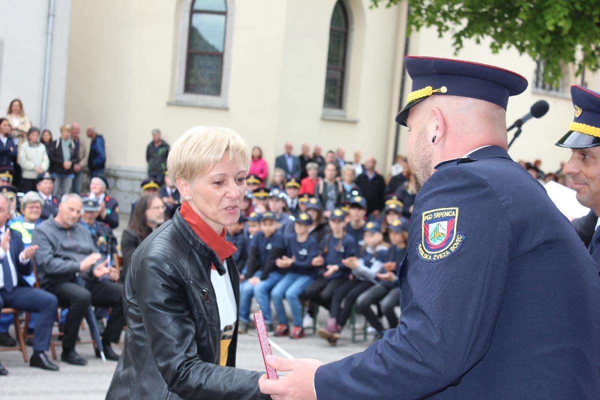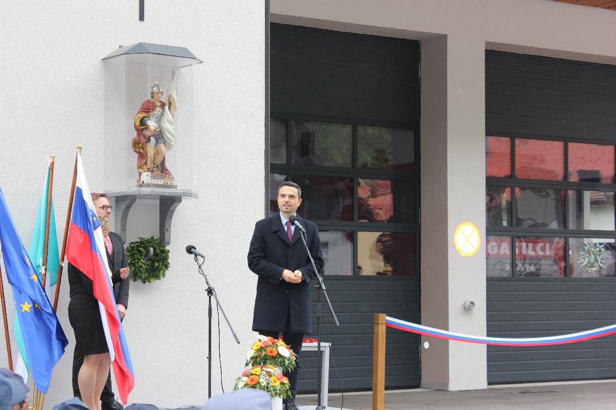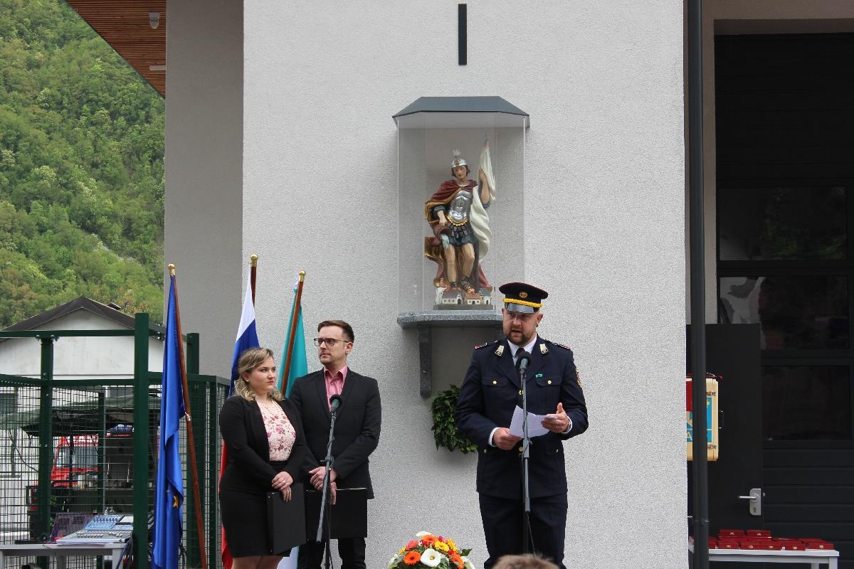 Pred nagovorom slavnostnega govornika so s kratkim, a poučnim gasilskim skečem publiko nasmejale domačinke iz Srpenice, slavnostni govornik, minister za obrambo Matej Tonin, pa je nato ob čestitkah k izgradnji tako kompleksnega objekta izrazil iskreno trditev, da je slovensko gasilstvo eno izmed najboljših na svetu ravno zato, ker temelji na prostovoljstvu in množičnosti. Izpostavil je tudi nekaj dosežkov in uspešnih akcij slovenskih gasilcev tudi v tujini.