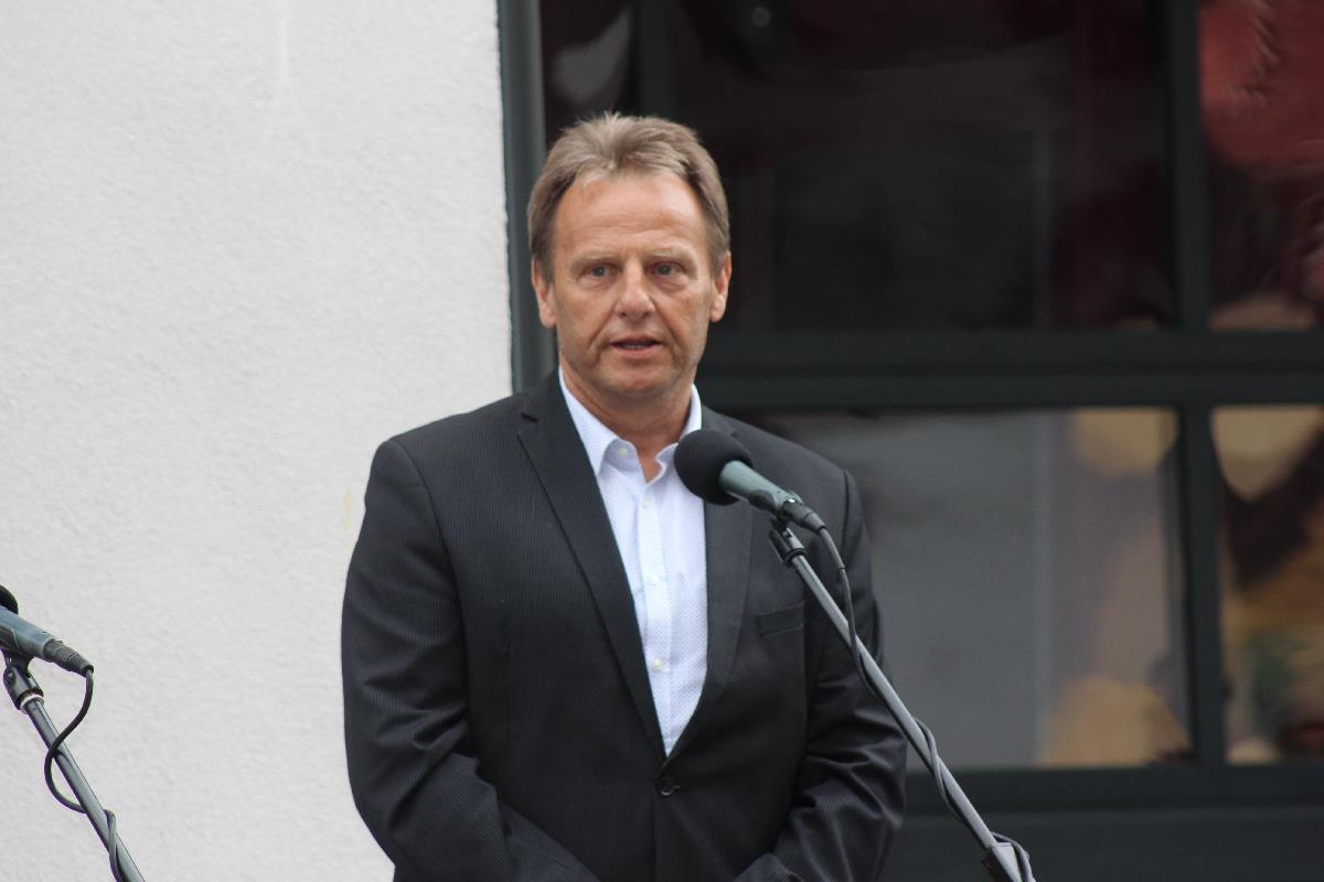 Sledil je pozdravni nagovor župana Občine Bovec Valterja Mlekuža, ki se je v začetku nagovora spomnil dogovarjanj pred štirimi leti in se zahvalil tudi Občinskemu svetu Občine Bovec, ki je potrdil projekt gradnje in so svetniki vseskozi stali za svojo odločitvijo: