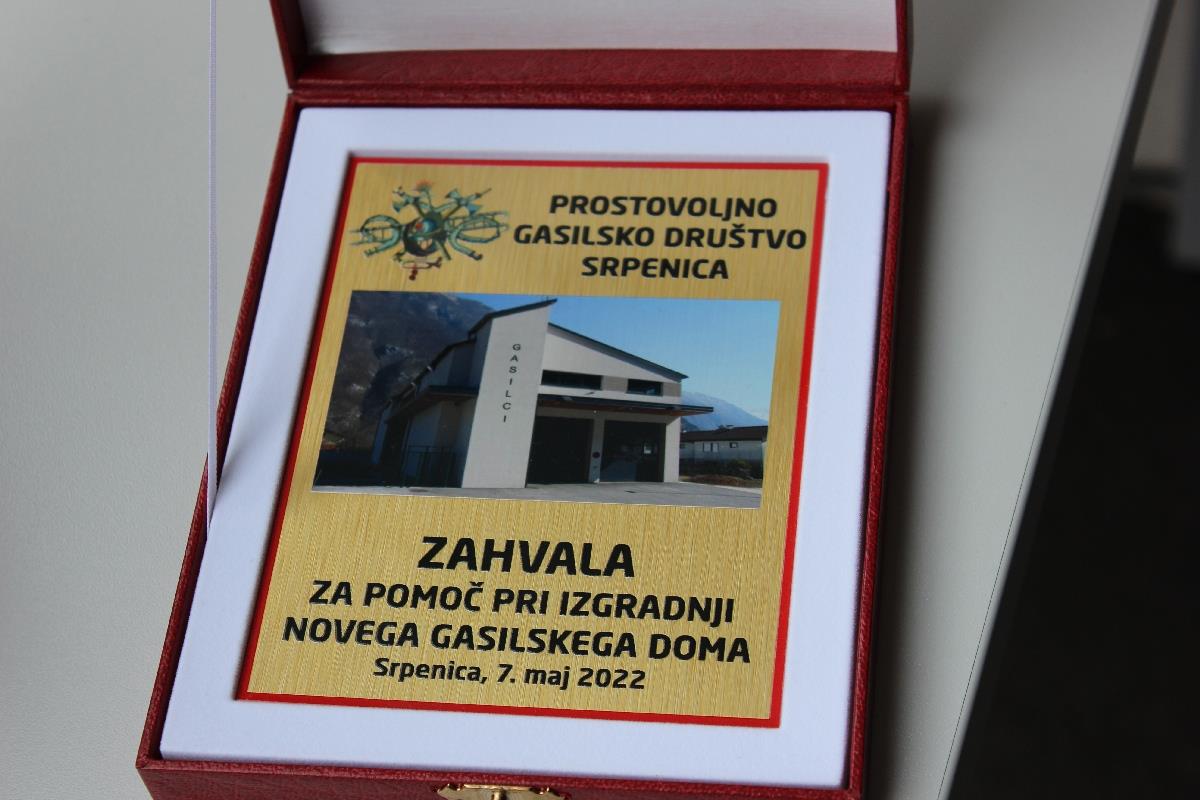 Predsednik PGD Srpenica Žan Logar in poveljnik PGD Boštjan Žagar sta se najzaslužnejšim sponzorjem, projektantom, nadzoru in izvajalcem zahvalila s posebnimi zahvalami, plaketo pa sta podelila Danijelu Krivcu. Krivec se je osebno zahvalil vsem za odlično sodelovanje: