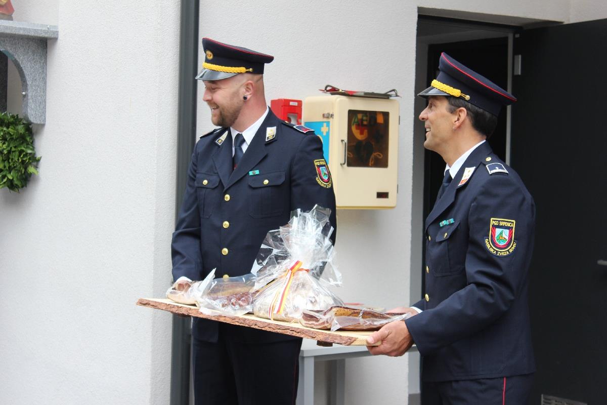 »Da smo sploh lahko začeli tako investicijo, se moram na tem mestu v imenu vseh srpeniških gasilcev zahvaliti Občini Bovec in njenemu županu Valterju Mlekužu. Valter, hvala za ves posluh in pomoč pri tako veliki investiciji, ki znaša milijon tristo tisoč evrov. Zahvaljujem se tudi vsem sponzorjem in donatorjem, tako za finančno pomoč kot pomoč v opremi. Da je teklo vse po načrtih in so bila dela izvedena v skladu z našimi pričakovanji, pa zagotovo ne morem mimo predsednika gradbenega odbora, Danijela Krivca. Zato se zahvalim tudi tebi, Danijel, in dovolite mi, da uporabim že ponarodeli izraz: Danijel, kapo dol v imenu vseh srpeniških gasilcev,«je poudaril Žan Logar.