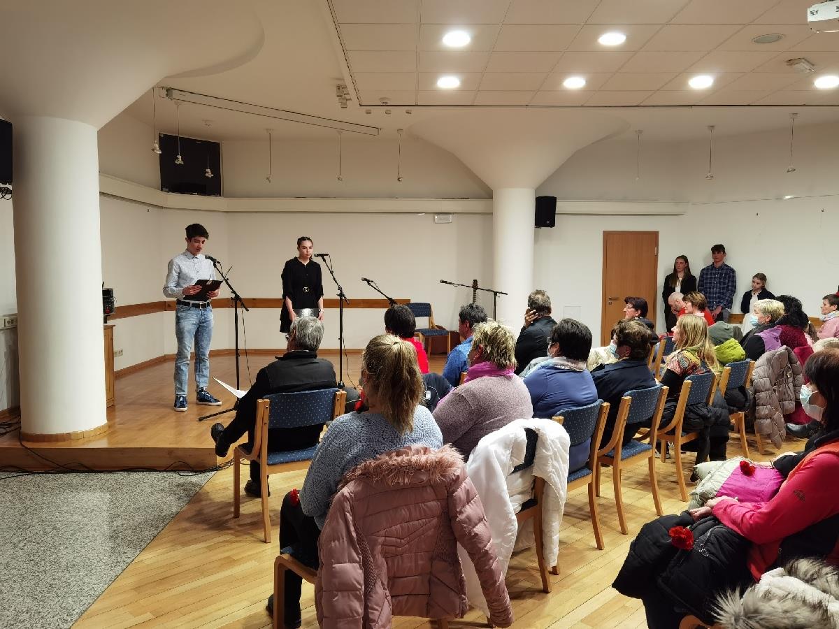 Prireditev se je nadaljevala z ubranimi zvoki Moškega pevskega zbora Golobar Bovec pod taktirko Danila Durjave, recitacijami učencev Osnovne šole Bovec pod mentorstvom Marijane Bon, na klavirju so jo nadgradili učenci Glasbene šole Tolmin, enota Bovec, pod mentorstvom profesorice Katje Skočir.