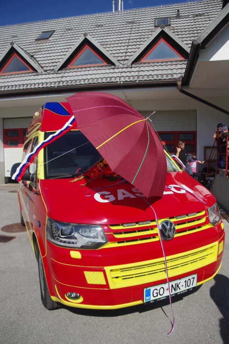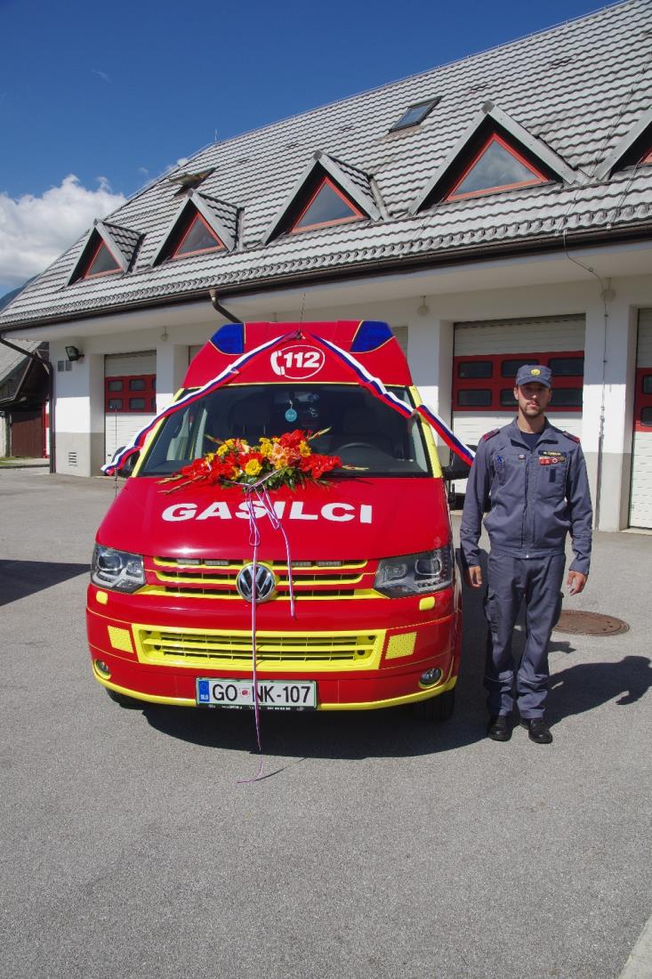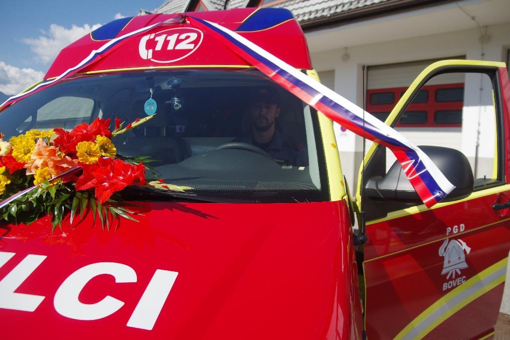 Reševalno vozilo za pomoč ponesrečenim ali obolelim osebam je blagoslovil bovški župnik in dekan Vilijem Čušin, ključe vozila pa je prevzel Matic Černuta.