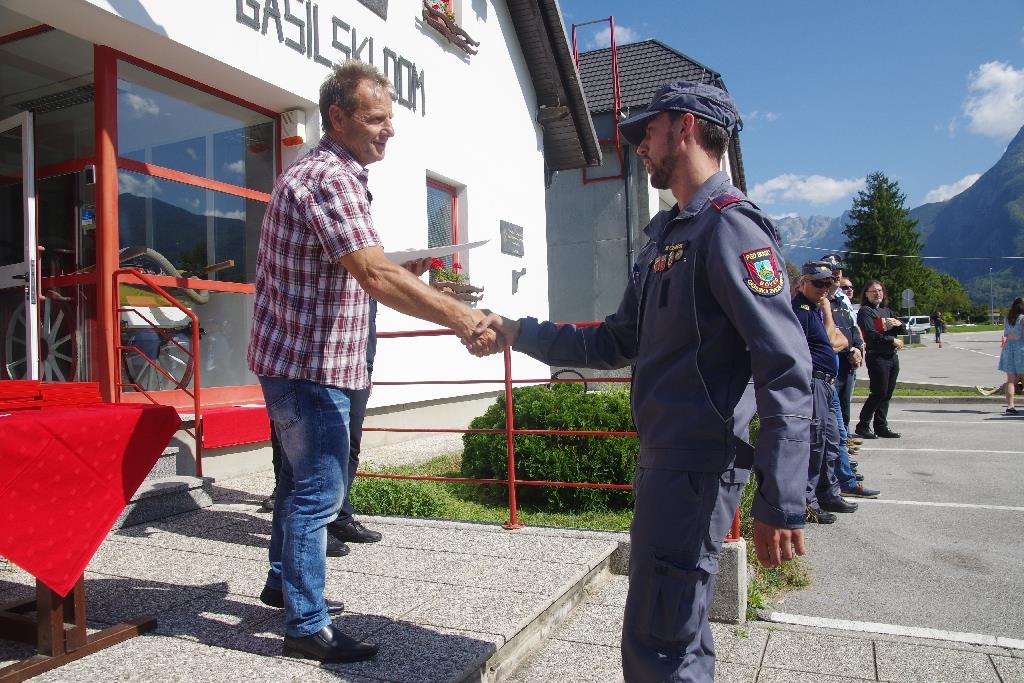 »Za novo pridobitev vam iskreno čestitam, hkrati pa izražam vse pohvale za vaše nesebično, plemenito delo, ki ga opravljate v korist družbe. Kot veste, Občina Bovec izdatno financira vaše delovanje, tudi izven ustaljenega rednega financiranja. Pri tem naj omenim samo sofinanciranje v minulem obdobju mojega mandata za nabavo gasilskega orodnega vozila za gašenje in druge opreme, prepotrebne ob intervencijah, pa seveda finančno zahtevno investicijo gradnje gasilskega doma na Srpenici, pri kateri je trenutno v izvajanju dokončanje zunanje ureditve. Seveda pa moram pohvaliti tudi prizadevanje gasilcev za pridobivanje sponzorskih sredstev in dodatnih sredstev z raznimi akcijami in prireditvami, kar je seveda hvale vredno in v evropskem prostoru unikum. V Slovenskem prostoru pa ste bili že z nabavo prvega reševalnega vozila unikum in ste orali ledino pri načinu nudenja prve pomoči kot prvi posredovalci. Prizadevamo si, da bi tudi pri resornem ministrstvu dosegli, da bi bili omogočeni tudi krajši prevozi ponesrečencev, ne da bi to moral odrediti zdravnik, saj imate za to tudi visoko usposobljen kader. Upam in verjamem, da bo tudi moj naslednik na enak način podpiral delovanje gasilstva na Bovškem, novo vozilo pa naj vam služi dobro, čeprav si želim, da bi ga morali čim manjkrat uporabljati,« je ob predaji vozila povedal župan Občine Bovec Valter Mlekuž.