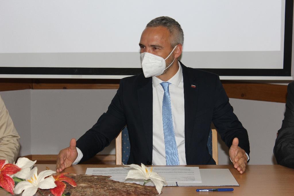 »Korona epidemija je še dodatno naplavila vse težave tega sektorja. Današnji slovesni podpis za gradnjo DOS Bovec, kot enote Doma upokojencev Nova Gorica, je velik korak za Občino Bovec in je velik korak za javno mrežo institucionalne oskrbe starejših v Sloveniji. To je projekt, ki bo omogočil ljudem to kar si večina od nas najbolj želi, to pa je preživljanje jeseni svojega življenja blizu svojemu domu, bližje svojcem, kar pomeni seveda tudi boljše možnosti za obiske, bolj kakovostno preživljanje prostega časa v okolju, ki jim je poznano. In tu vidimo, kakšno čudovito okolje je v Bovcu. Projekt v Bovcu je ocenjen na slabih šest milijonov evrov, po načrtu pa naj bi bil dokončan v let 2023. V tem projektu Občina Bovec sodeluje s približno 700.000,00€ lastnih sredstev. Naj omenim še, da ima naše ministrstvo trenutno odprt velik razpis v vrednosti 93 milijonov evrov za razbremenitev in dvig kakovostne ravni obstoječih kapacitet, v teku pa je tudi že drugi projekt za podelitev koncesij v času našega mandata. Razdelili smo za 1200 postelj v koncesijah, zdaj jih bomo razdelili še 1100,« je s konkretnimi številkami postregel minister Janez Cigler Kralj in jih podkrepil s podatkom, da je v tem trenutku v Sloveniji povpraševanje po okoli 10 000 mestih v DOS, od tega 4000 takih, ki bi takoj vstopili v domsko oskrbo. Minister Ciglar Kralj pa ni pozabil povedati, da gre velika zahvala za to, da se je tudi v Bovcu pripravil projekt za gradnjo DOS Bovec, poslancu v DZ RS Danijelu Krivcu.