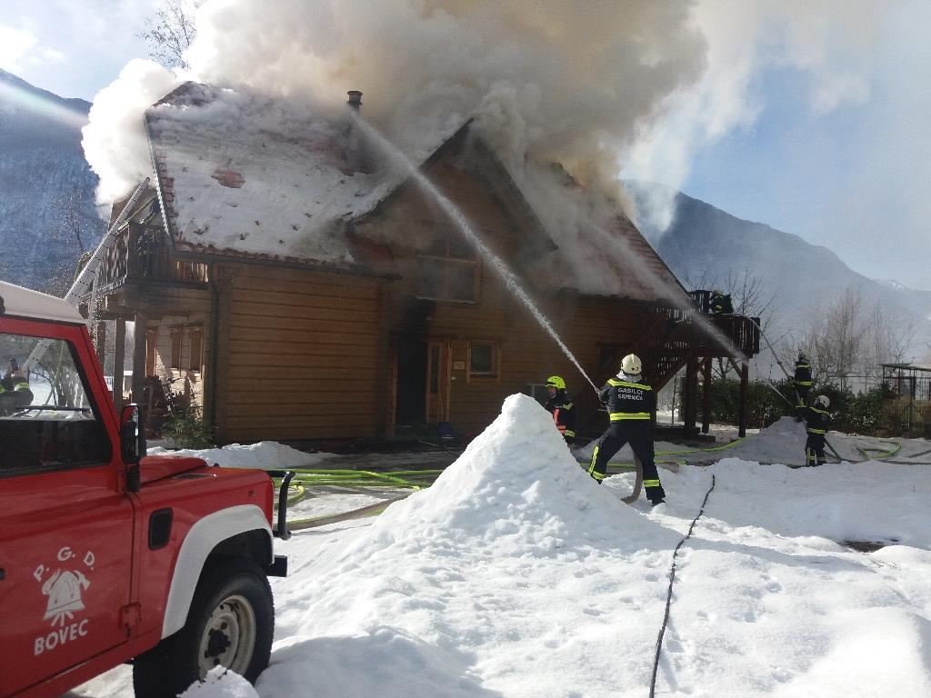 V soboto, 30. januarja, je nekaj po 9. uri prišlo do požara v novejši stanovanjski hiši v naselju Brdo v Bovcu. S hitro akcijo PGD Bovec, PGD Log pod Mangartom, PGD Srpenica in enote PGD Bovec iz Trente, v kateri je sodelovalo 46 prostovoljnih gasilcev z več gasilskimi vozili, so do 12.30 uspeli požar pogasiti, vendar objekt kljub temu ni več primeren za bivanje. Vodja akcije je bil poveljnik Gasilske zveze Bovec Uroš Kemper.