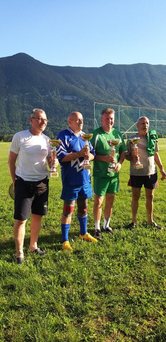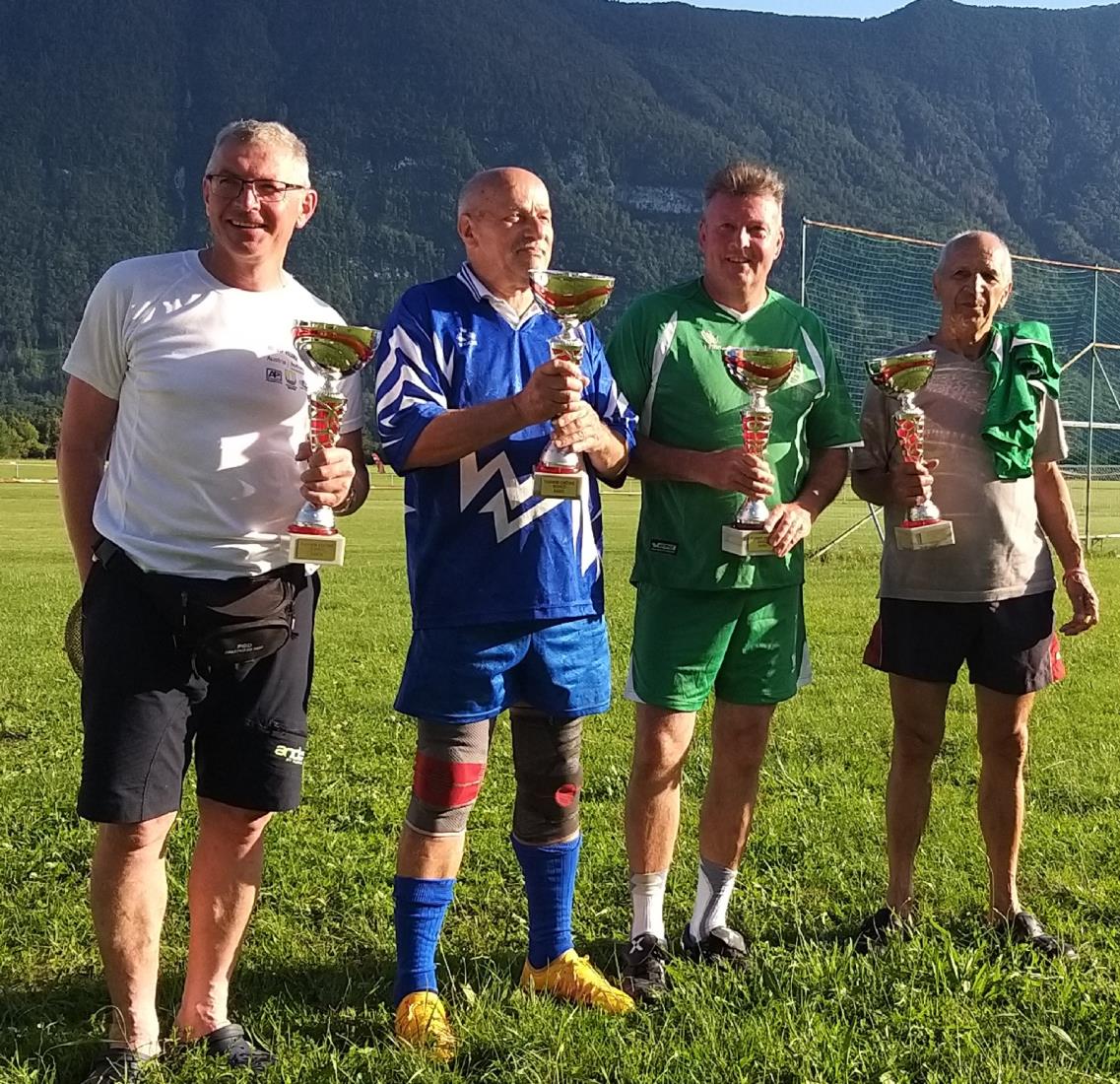 No ja, udeleženci že vedo, katera ekipa je bila najboljša, a so enake pokale prejele vse ekipe, saj ni šlo za rezultatsko pomemben nogomet, temveč za prijetno športno druženje. Pokal je prejel tudi najstarejši, zato pa nič manj aktiven igralec, Jože Zorč, iz ekipe Občine Bovec.