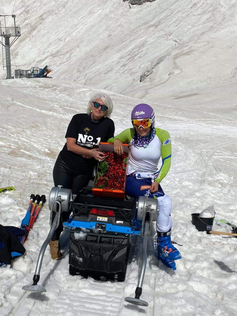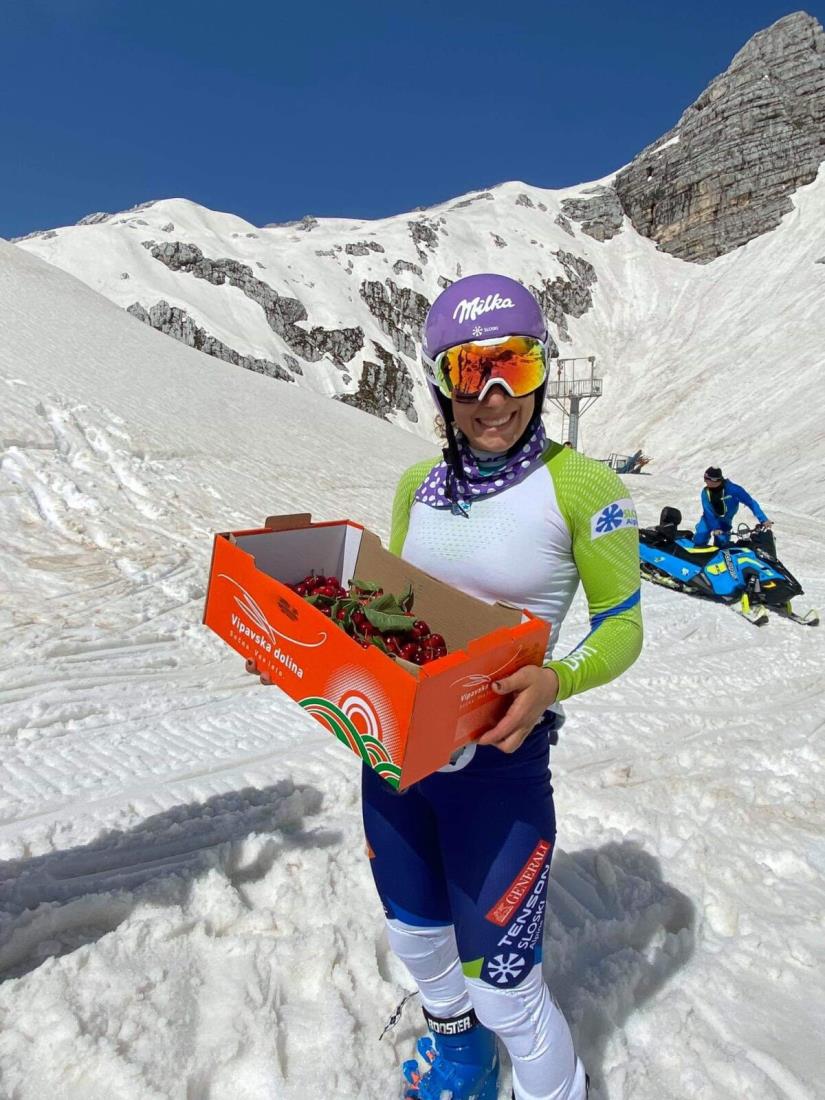 Lepo in v jutranjih urah dovolj hladno nedeljsko vreme pa je bilo naklonjeno tudi treningu Ilke Štuhec, v.d. direktorja Sončnega Kanina Manuela Božič Badalič, pa ji je pod Prestreljenik prinesla tudi slastne vipavske češnje. Meta Hrovat se ji je na treningu pridružila danes, obe pa že od zgodnjega jutra spremljajo tudi RTV SLO, POP TV IN PLANET TV. Ne zamudite objav v teh medijih.