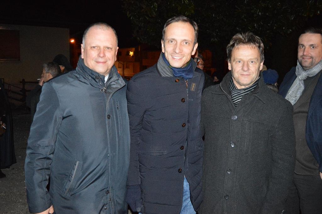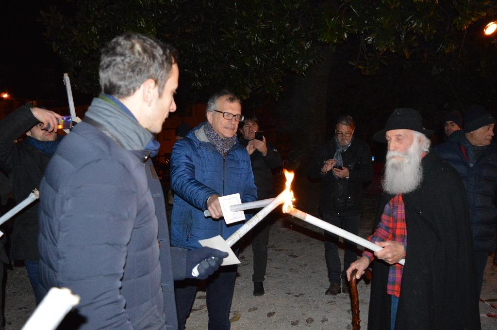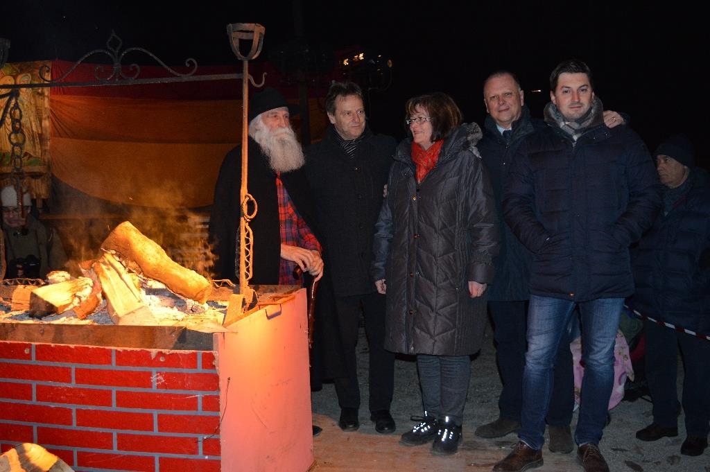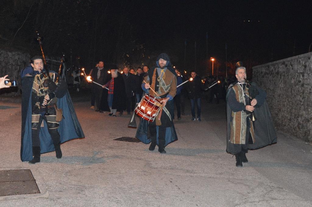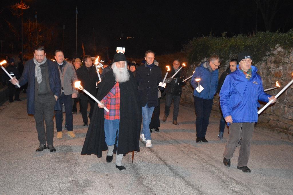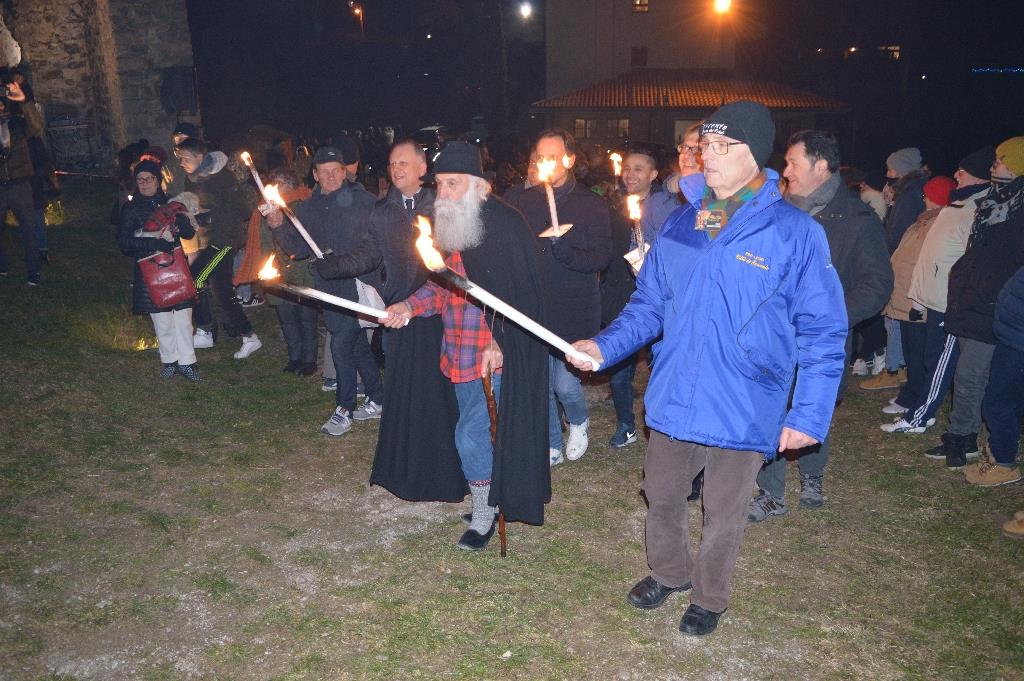 Ob prizorišču sta se župana srečala tudi s predsednikom Furlanije Julijske krajine (FJK) Massimilianom Fedrigo, z bovškim županom Valterjem Mlekužem pa sta na kratko spregovorila tudi o načrtovanju gradnje novih žičniških napravna obeh straneh smučišča Kanin- Sella Nevea, ki jo tudi Fedriga zelo podpira. Mlekuž je Fedrigo tudi uradno povabil na obisk v Bovec, za katerega se bosta dogovorila v prihodnjih dneh. Roke smo si stisnili tudi s predsednikom deželnega sveta FJK Pierom Maurom Zaninom, seveda pa so bili ob prizorišču tudi drugi predstavniki Občine Čenta in pa predstavnica z Občino Čenta pobratene Občine Unterföhring. Skupaj so si ogledali prireditev, v kateri so izvajalci v sprevodu v srednjeveški opravi prikorakali na osrednje prizorišče, kjer je nato po stari tradiciji Vieli Venerando, simbol starodavnega starešine, simboličen lik dedka in pripovedovalec, napovedal prižig Pignarûl Grant in z velikega ognjišča podal ogenj na bakle gostov.