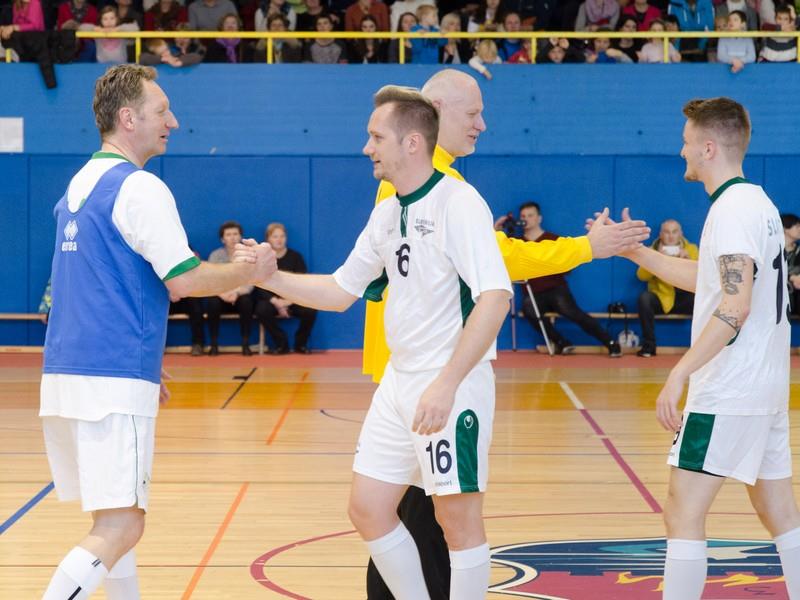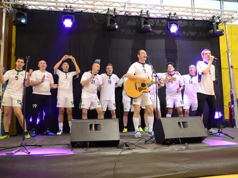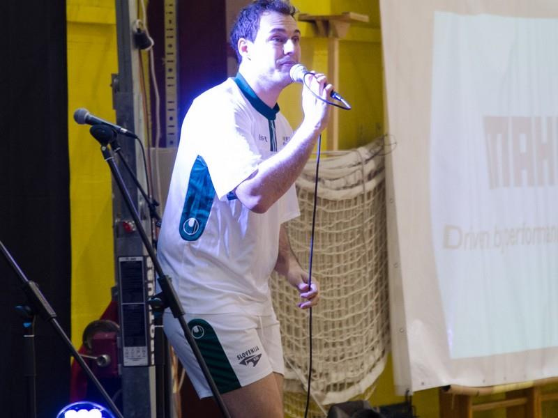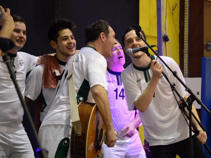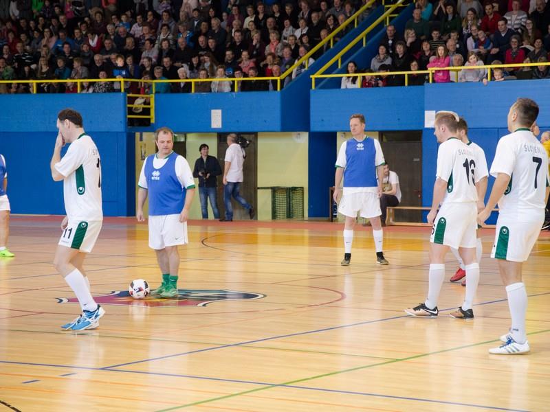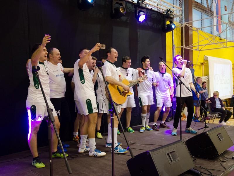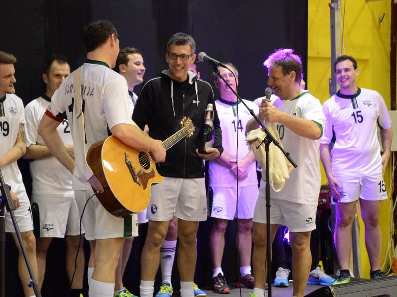 Nato je šlo zares, in ko je Judita Špolad, pomočnica ravnatelja OŠ Franceta Bevka Tolmin in vodja podružnične šole kot prva brcnila žogo, se je začel turnir štirih tekem, ki so se prepletale z glasbenimi nastopi na odru. Glasbeniki so dokazali, da odlično obvladajo oba parketa, tako nogometnega kot odrskega, publika pa je navdušeno spodbujala čisto vse igralce. Tudi gospodarstveniki so žogo brcali presenetljivo dobro, tako da je celo ekipa nogometašev v slovenskih reprezentančnih dresih za nadvlado nasprotnika morala uporabiti vse svoje znanje. Politiki pa so se morali zahvaliti predvsem svojemu vratarju, predsedniku DZRS Milanu Brglezu, da se njihova mreža ni pretirano tresla.
